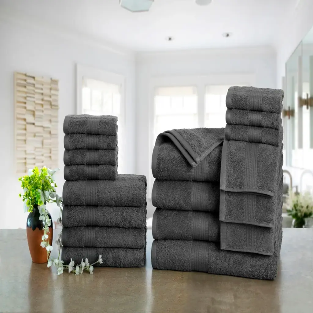 Luxurious Cotton 600 Gsm Bathroom Towel Sets By Ample Decor - Set Of 18 - Grey
