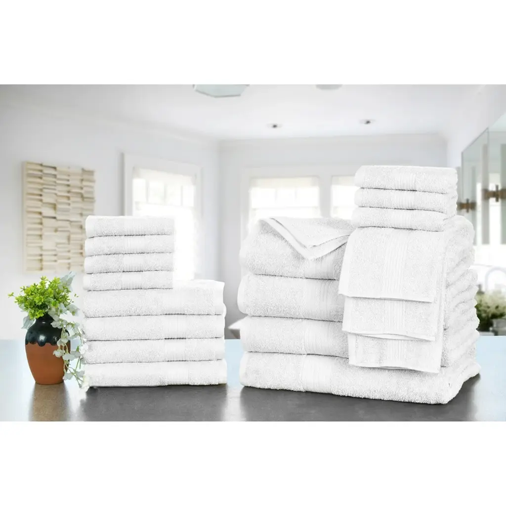 Upgrade your bathroom experience with our Ample Decor Bathroom Towel Set of 18. Made from 100% cotton with a 600 GSM absorbency, these towels are soft, quick-drying, and machine washable. This value pack includes four bath towels, four hand towels, and ten washcloths, available in a variety of stylish colors to match your decor. With a lightweight design and highly absorbent features, these towels are perfect for any bathroom.Features:Dimensions:About Ample Décor:Other Products: