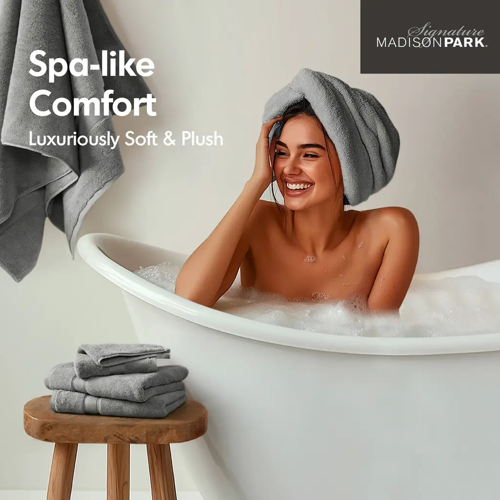Madison Park Signature 800gsm Ultra-Soft 100% Cotton Absorbent Towel Set - 2-Piece - Grey