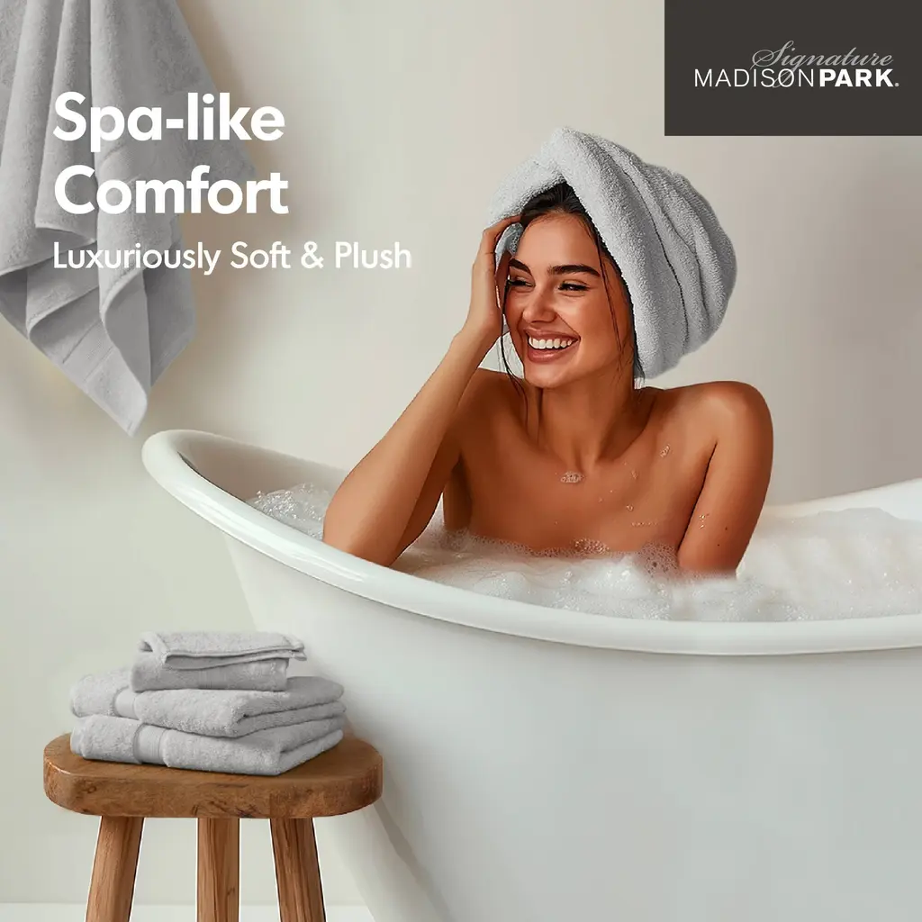 Madison Park Signature 800gsm Ultra-Soft 100% Cotton Absorbent Towel Set - 2-Piece - Silver
