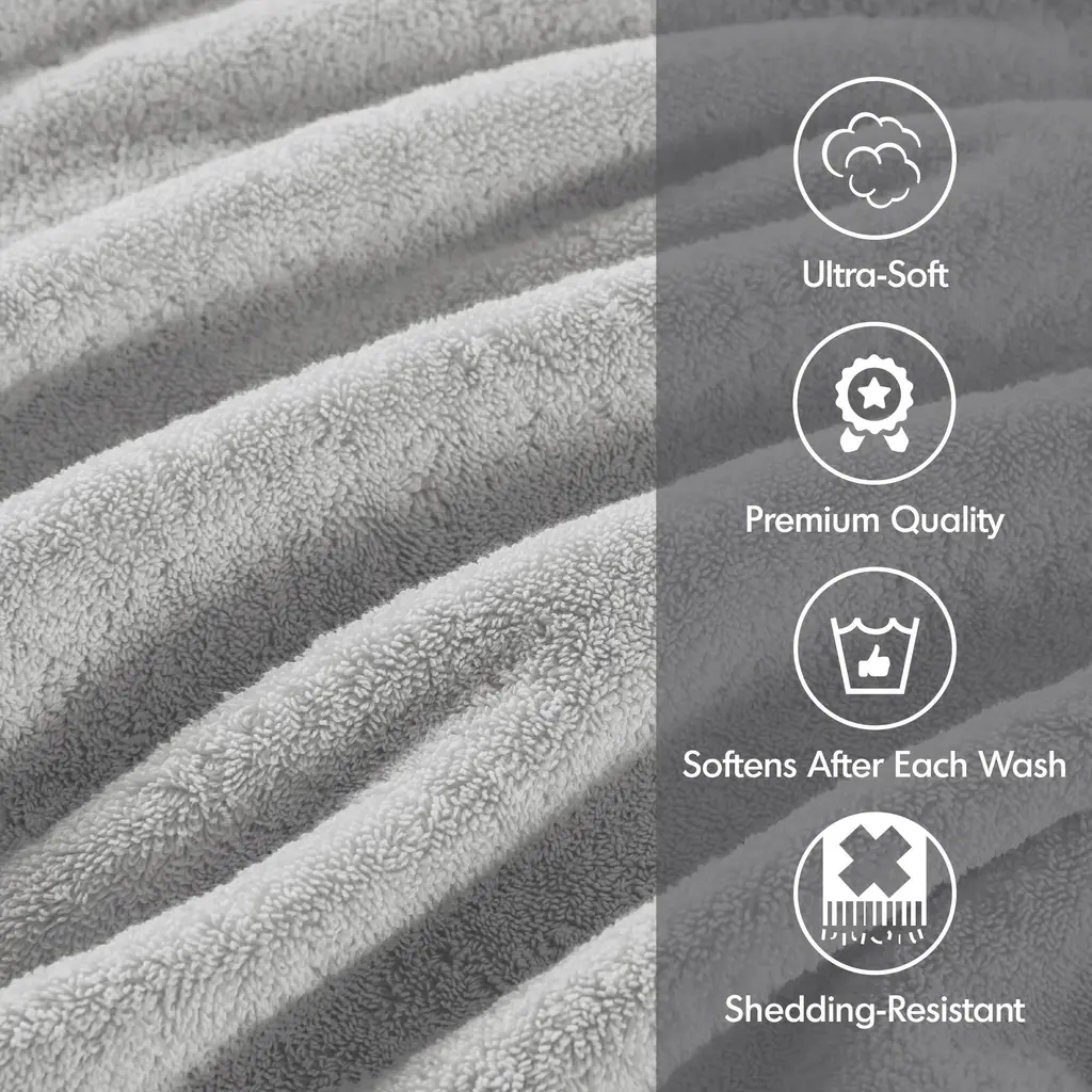 Elevate your cleaning routine with our 800GSM 100% cotton towel set, boasting a highly absorbent, plush texture. Constructed with durable double-ply loops made from thick long-staple cotton using the zero twist technique, these premium towels minimize lint and provide lasting freshness thanks to their antimicrobial treatment for a seamless bathroom experience. Additionally, this set holds an Oeko-Tex Certification, demonstrating our dedication to safety and ensuring gentle, non-irritating skin contact. Available in a variety of colors, our towels offer a superior texture and bring a spa-like experience with you wherever you go.Features:2-Piece Dimensions:8-Piece Dimensions: