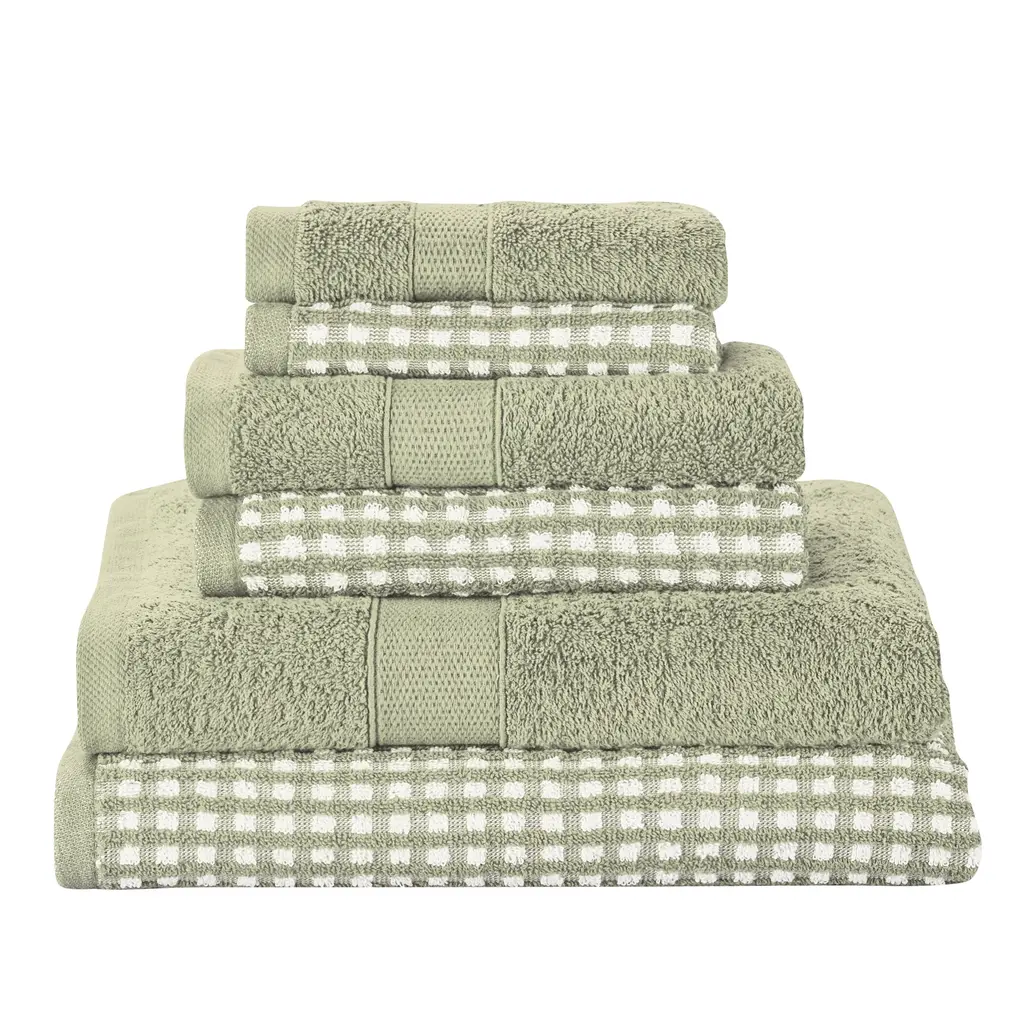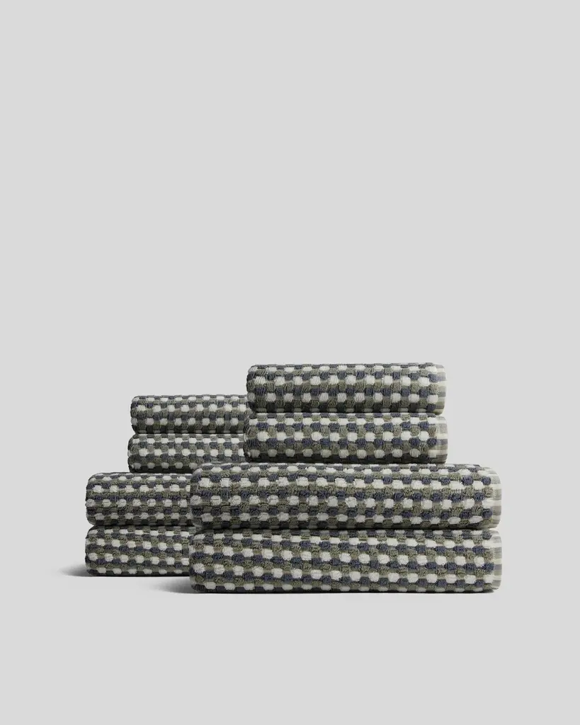 Bring nature indoors with the Gaea 6-Piece Towel Set. The dotted texture is reminiscent of a pebbled walkway. With neutral colors that both complement and contrast one another, this bath towel will add comfort and style to your bathroom routine. Made of 100% cotton, this towel is super soft and absorbent. This 6-Piece set includes two bath towels, two hand towels, and two wash cloths. The Martex Arcadia Collection offers a selection of specially tailored bedding and bath products that bring forth a sense of understated luxury to your home.