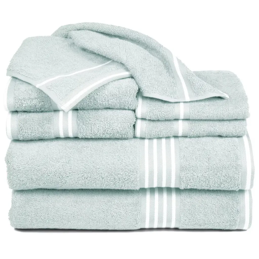 Expertly woven for allergen-aware families, these 100% Cotton towels were created with a special emphasis on low-linting to reduce the presence of airborne lint and dust to minimize allergy triggers. Super soft, absorbent, and durable, they stay thick and plush after repeated washing. This 6-piece towel set includes 2 bath towels, 2 hand towels and 2 wash cloths. • 100% Cotton • Low-linting for an allergen-aware lifestyle • Soft, spa-like color palette • 6-Piece Towel Set includes 2 Bath Towels (27 x 54 in.), 2 Hand Towels (16 x 27 in.), and 2 Wash Cloths (12 x 12 in.) • Certified OEKO-TEX® STANDARD 100 ensures compliance with testing for over 350 harmful substances. • Imported Machine wash before use. Wash colors separately in warm water. Do not bleach. Tumble dry low, remove promptly.
