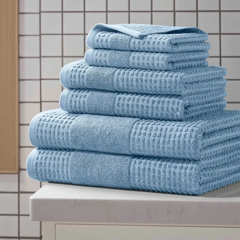As if sculpted by airy clouds, the Martex Expressions Air Sculpted 6-Piece Towel Set is irresistibly soft and fluffy. With its unique grid-like texture and full terry border, these100% cotton towels are the perfect addition to your bathtime ritual. The 6-piece towel set includes two bath towels, two hand towels, and 2 wash cloths for a full assortment of towels. Martex Expressions blends youthful energy with playful textures to bring a bedding and bath collection that will have your space radiating with bold self-expression.