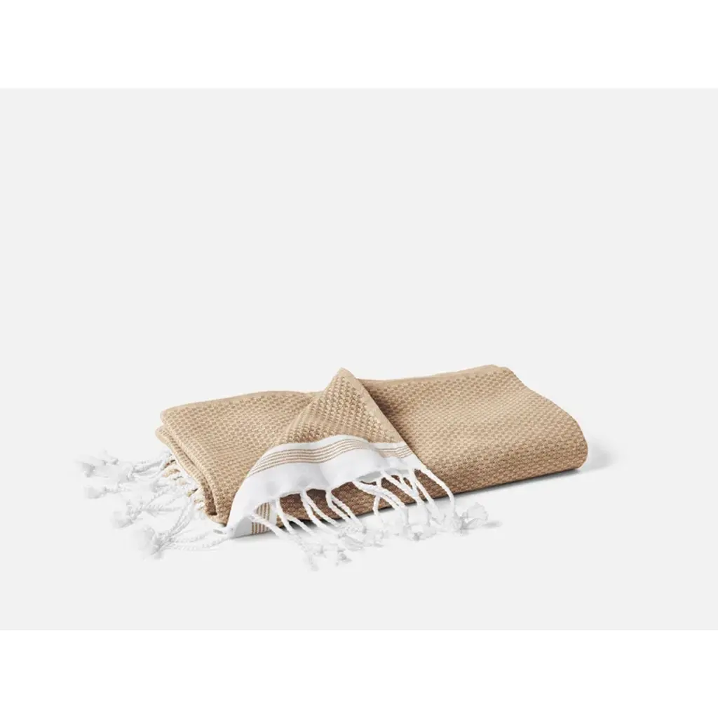 In Turkey, where bathing has been raised to be an art, a flatweave towel is a traditional choice for toweling. Our Mediterranean towels are traditional lightweight Turkish bath towels with a high/low weave for excellent absorption. Woven from yarn-dyed organic cotton and edged in hand-knotted fringe.