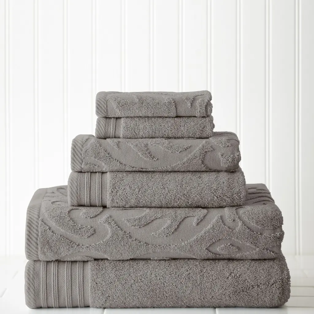 Modern Threads 6 Piece Jacquard Medallion Swirl Towel Set, Taupe