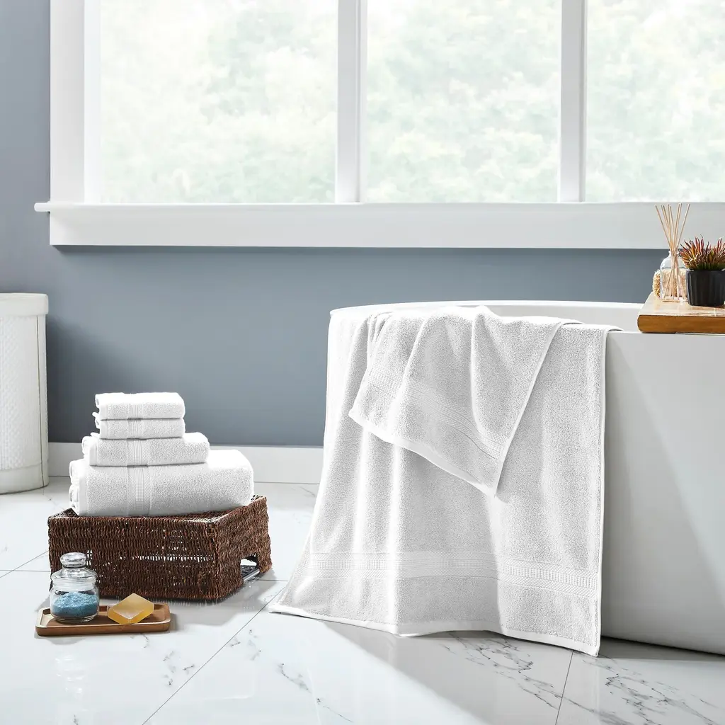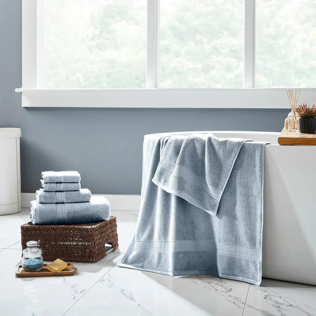 Modern Threads Rayon Bamboo Cotton Blend 6-Piece Towel Set offers a perfect blend of luxury and practicality. Made with a premium blend of Rayon from Bamboo and Cotton, these towels deliver exceptional softness and high absorbency. Bamboo's natural moisture-wicking properties ensure you stay dry faster, while its quick-drying capabilities keep the towels fresh and ready for your next use. With a plush 550 GSM and Solucell Zero-twist yarns, these towels maintain their plushness and durability, providing a luxurious feel and superior performance. Ideal for any bathroom, this set combines modern design with outstanding functionality for an elevated bathing experience. Features Luxurious Bamboo & Cotton Blend: Crafted from a premium blend of 30% Rayon from Bamboo and 70% Zero-twist combed cotton, these towels provide a soft, plush feel unlike any other, perfect for elevating your bathing experience. 6-Piece Set for a Complete Bathroom Upgrade: Includes 2 bath towels (30"x54"), 2 hand towels (16"x28"), and 2 washcloths (13"x13") to fully outfit your bathroom with stylish and practical towels. Oeko-Tex® certified, the definitive mark of excellence for products that are healthy for you and healthy for the environment. Plush & Durable with 550 GSM: With a weight of 550 GSM and Solucell Zero-twist yarns, these towels offer the perfect combination of softness, thickness, and long-lasting durability, ensuring they retain their plush texture wash after wash. Care Instruction: Machine washable and dryer safe. Recommended - Machine wash gentle cycle with cold water. Sun dry or low tumble dry.