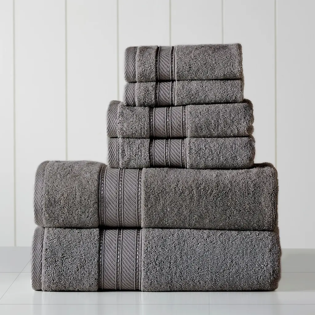 Indulge yourself in spa like luxury with this luxurious set of Spun Loft towels. The set is made of cotton known for its softness, absorbency, and durability. Unlike zero twist towels where the cotton yarns are twisted with the a PVA yarn (Plastic fiber), the Spun Loft yarn is twisted without any plastic yarns. These towels make an ideal complement to any bathroom whether you use it to pamper yourself or reserve it for special guests. Cotton fibers are valued for their superior length and strength, which also reduces the buildup of pile and lint. These towels will feel cozy and comfortable against your skin every time you use them. Additionally the towels get softer with washing and drying. Features Materials: 100% Combed Cotton Set Includes: (2) bath towels, (2) hand towels and (2) washcloths Measures: Bath- 27x54 inches, Hand- 16x28 inches, Wash-13x13 inches Oeko-Tex® certified, the definitive mark of excellence for products that are healthy for you and healthy for the environment Features: Unlike zero twist towels where the cotton yarns are twisted with the a PVA yarn (Plastic fiber), the Spun Loft yarn is twisted without any plastic yarns. Care Instruction: Machine washable and dryer safe. Recommended - Machine wash gentle cycle with cold water. Sun dry or low tumble dry.