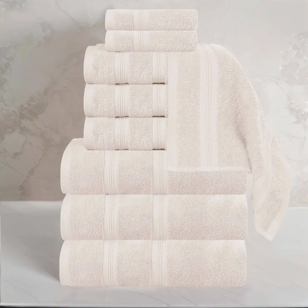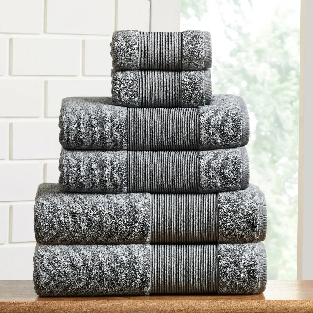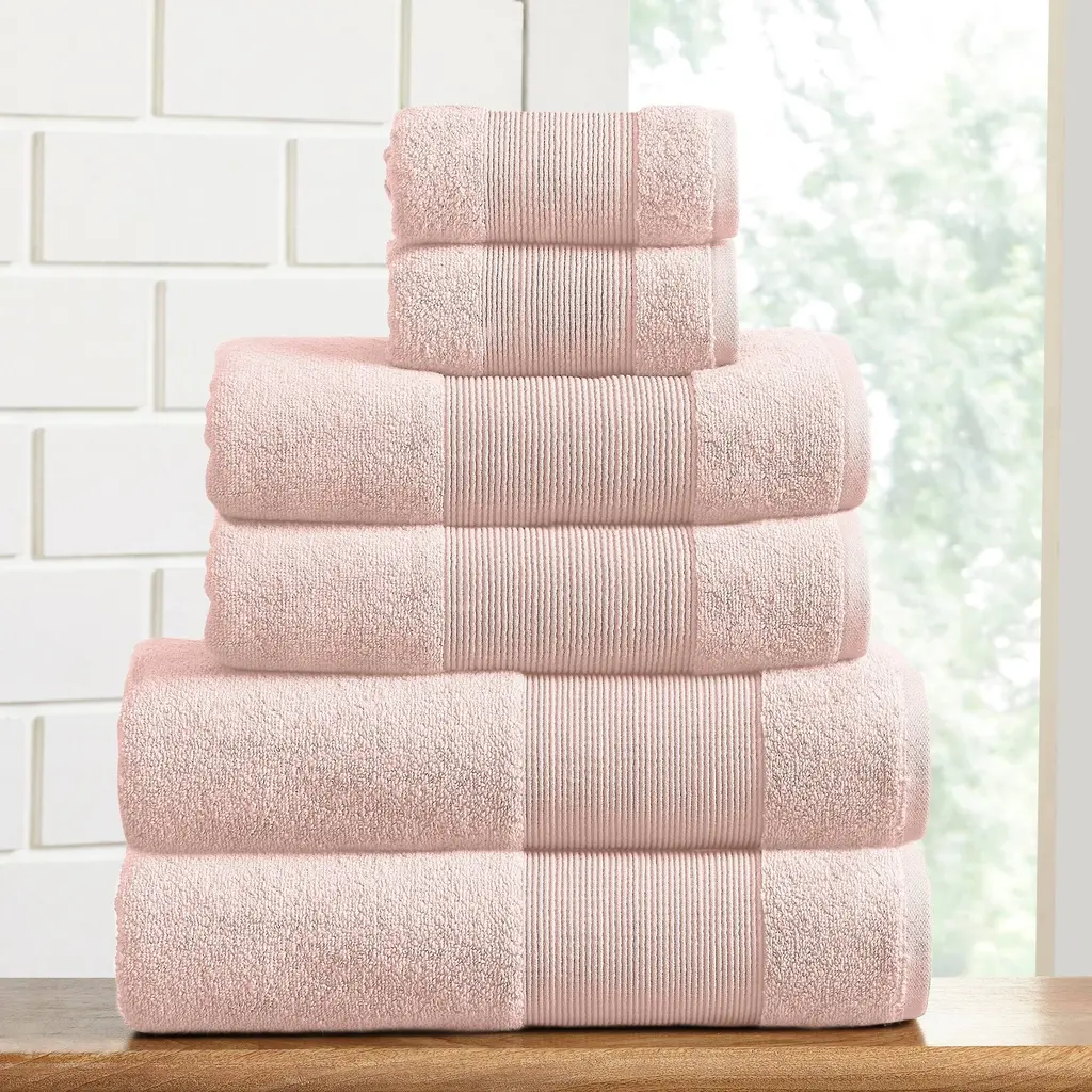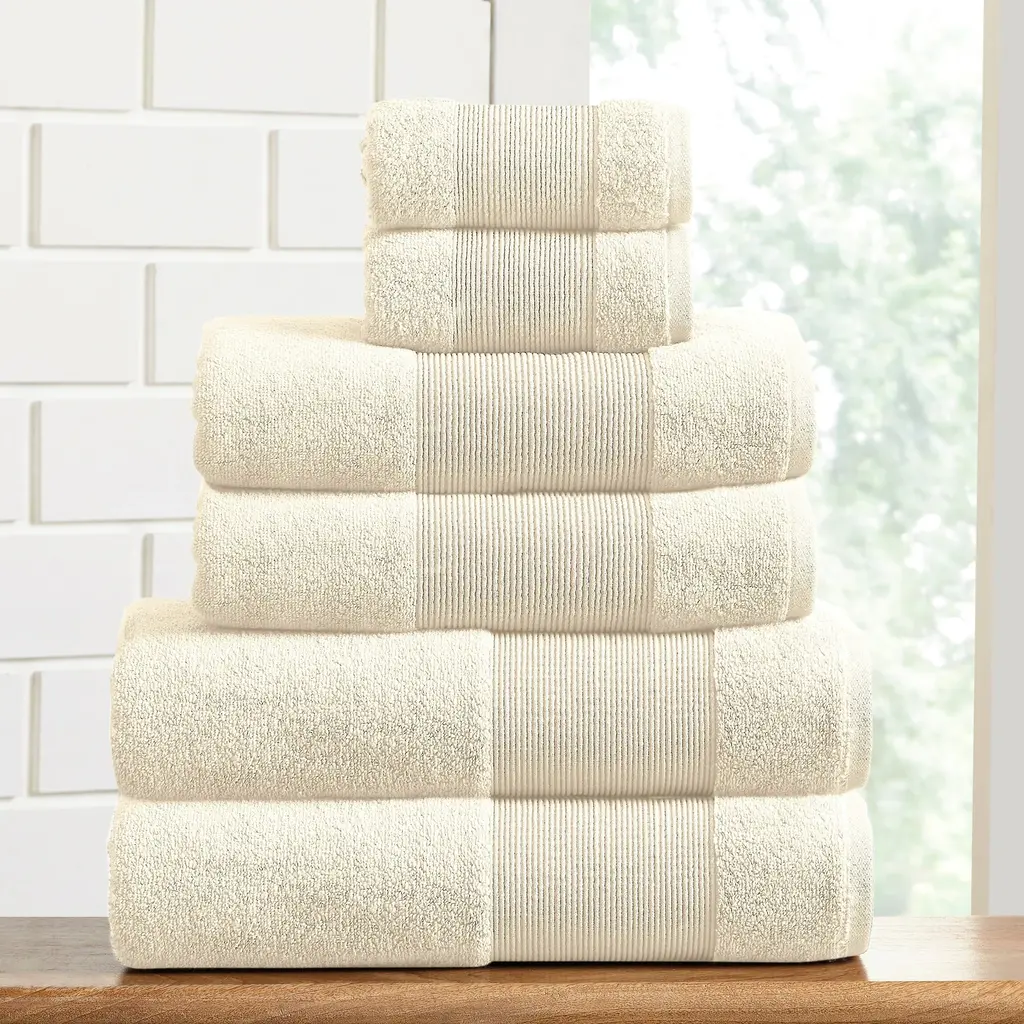 Find sumptuous comfort in this bath towel set, which includes two bath towels, two hand towels, and two washcloths to meet your bathroom needs. Crafted form 100-percent cotton in a zero-twist weave, these towels are super absorbent. Pamper your skin while quickly drying off moisture with these plush, lightweight towels. Materials: 100% Combed Cotton Set Includes: (2) bath towels, (2) hand towels and (2) washcloths Measures: Bath Towels - 27 x 54 inches, Hand - 16 x 28 inches, Wash - 13 x 13 inches Features: A zero twist weave allows water to be quickly absorbed. Luxuriously soft towels become softer with every wash with extra thick weave. Care Instruction: Machine washable and dryer safe. Recommended - Machine wash gentle cycle with cold water. Sun dry or low tumble dry.