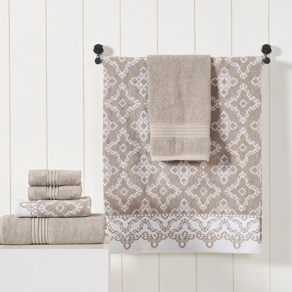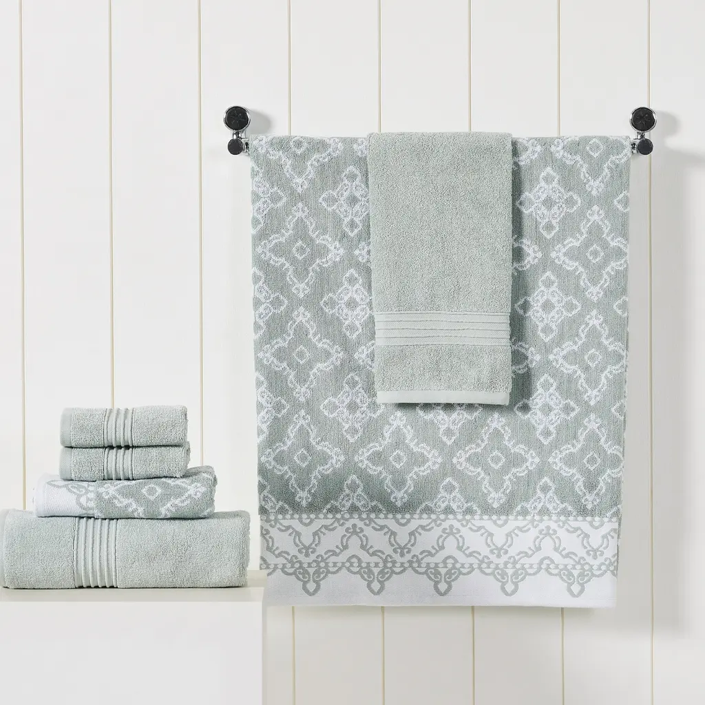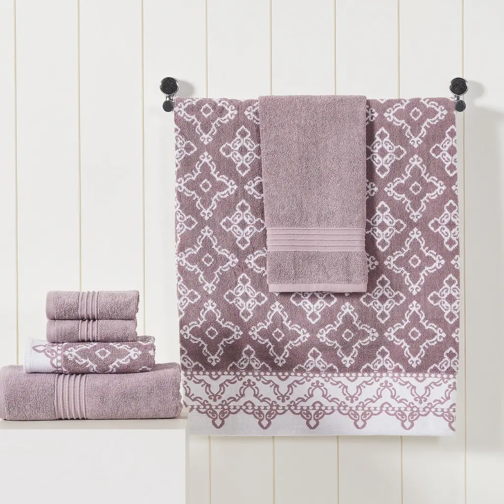 This set is the perfect complement to any bathroom whether you use it to pamper yourself or reserve it for special guests. These towels will feel cozy and comfortable against your skin every time you use them. Half of the set features a solid color design, while the other half is a yarn dyed jacquard pattern that adds texture and beauty to this gorgeous set. Additionally, the towels get softer with washing and drying. Oeko-Tex certified, the definitive mark of excellence for products that are healthy for you and healthy for the environment. Features Materials: 100% Combed Cotton Set Includes: (2) Bath towel, (2) Hand towel, (2) Washcloth Measures: Bath - 27x54 inches, Hand - 16x28 inches, Wash -13x13 inches Oeko-Tex® certified, the definitive mark of excellence for products that are healthy for you and healthy for the environment Features: These 550 GSM towels become softer with every wash. Care Instruction: Machine washable and dryer safe. Recommended - Machine wash gentle cycle with cold water. Sun dry or low tumble dry.
