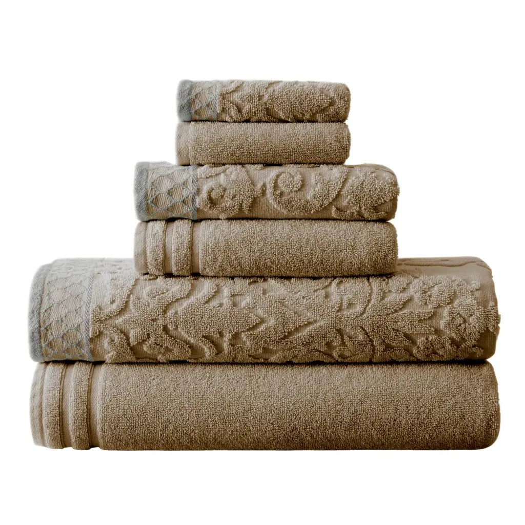 Modern Threads Damask Jacquard 6-Piece Embellished Border Towel Set - Grey