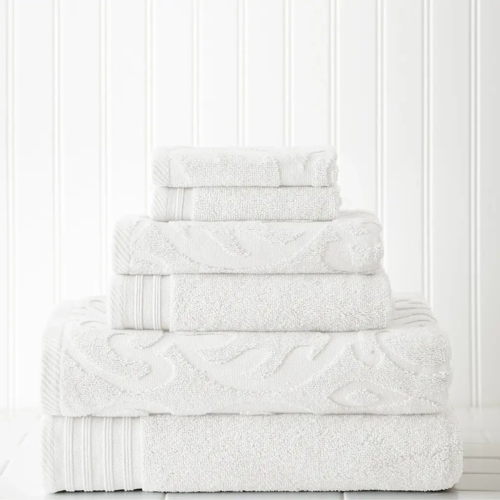 Modern Threads Jacquard/ Solid Medallion Swirl 6-Piece Towel Set - White