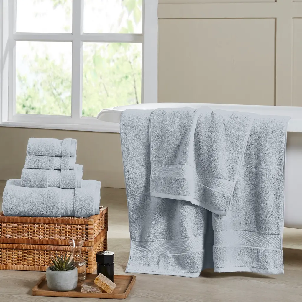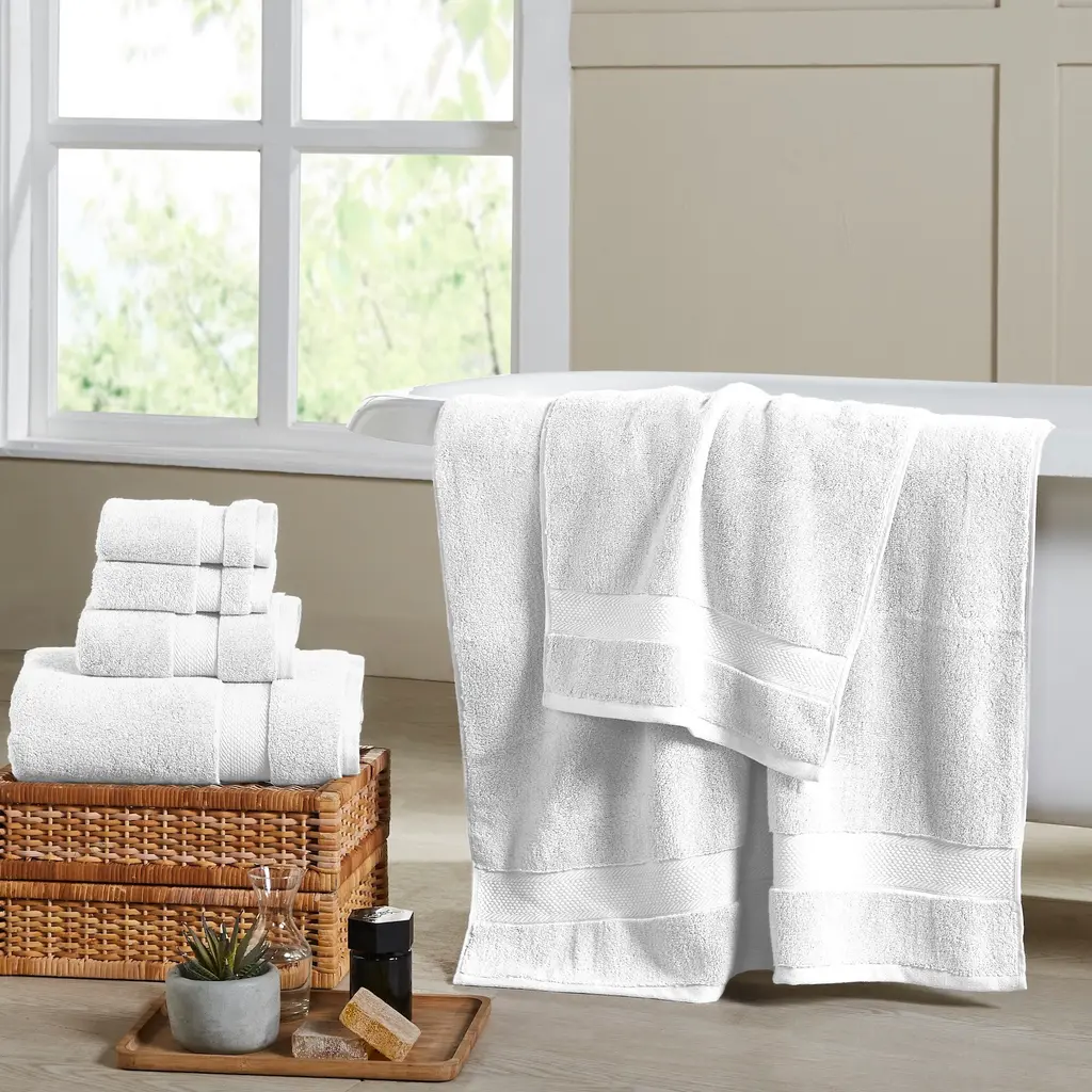 Immerse yourself in the luxurious softness that only genuine cotton can provide. Gentle on skin, our towels ensure optimum absorbency with every use. Zero-twist fibers combined with a sophisticated border make our towels a beautiful addition to any bathroom setting. Not only do they look great, but the zero-twist design also ensures rapid drying and a plush, cloud-like feel. Crafted with a 650 GSM combed-cotton, our bath towel set is designed to quickly absorb water from your skin after a long bath. Affordable and long-lasting, our bath set provides access to the kind of luxury towels you use to only experience on vacation. Features