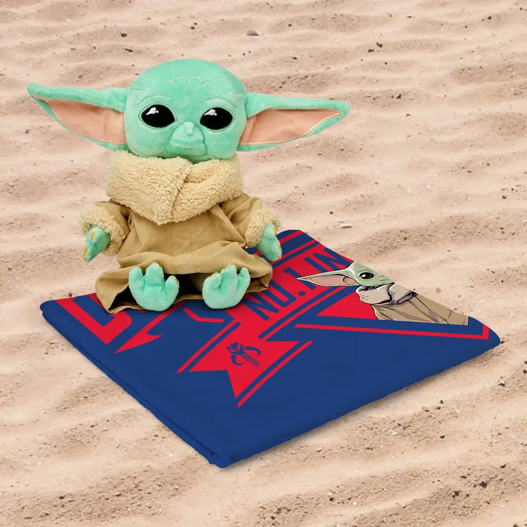 Get ready to take your beach or pool day to the next level with the Star Wars Beach Towel and Child Yoda Hugger Character Pillow Set! Show off your love for Star Wars in style with this unique and eye-catching design. Made from blend of 52% cotton and 48% polyester, this towel is designed to be highly absorbent, allowing you to dry off quickly and comfortably. Measuring at 30"W x 60"L, it's the perfect size to wrap around yourself after a swim. This design is perfect for any Yoda and Star Wars enthusiast, making it a great gift for yourself or for someone special.Features: