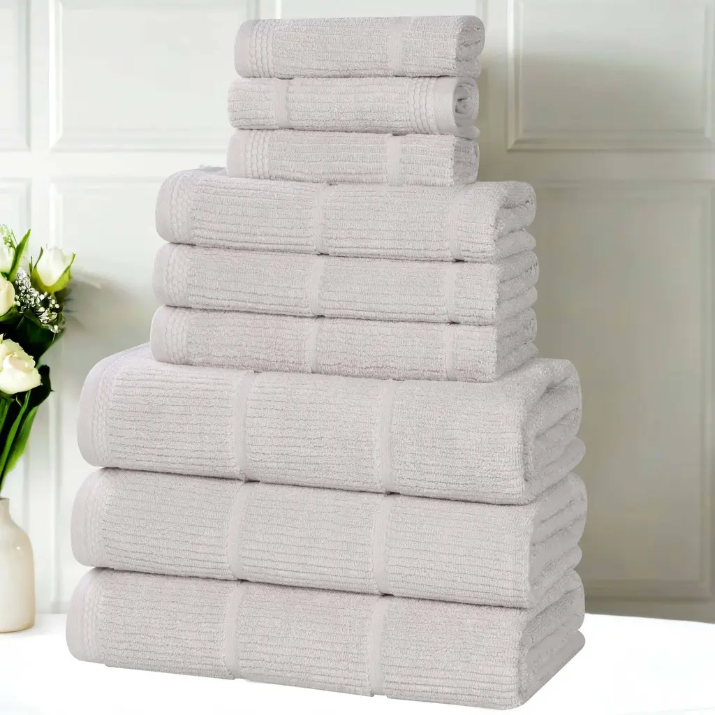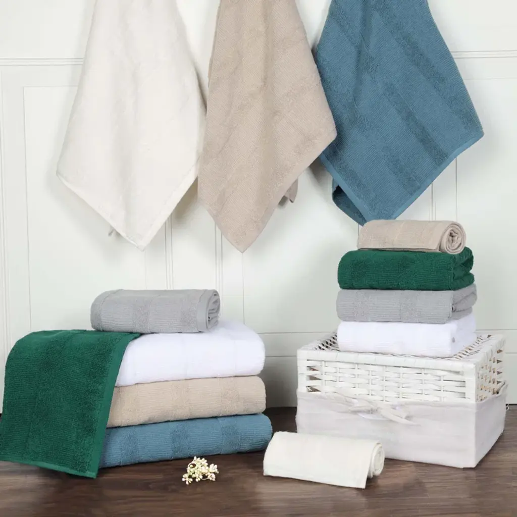 Oilton Ribbed 12 Piece 100% Cotton Bath Towel Set