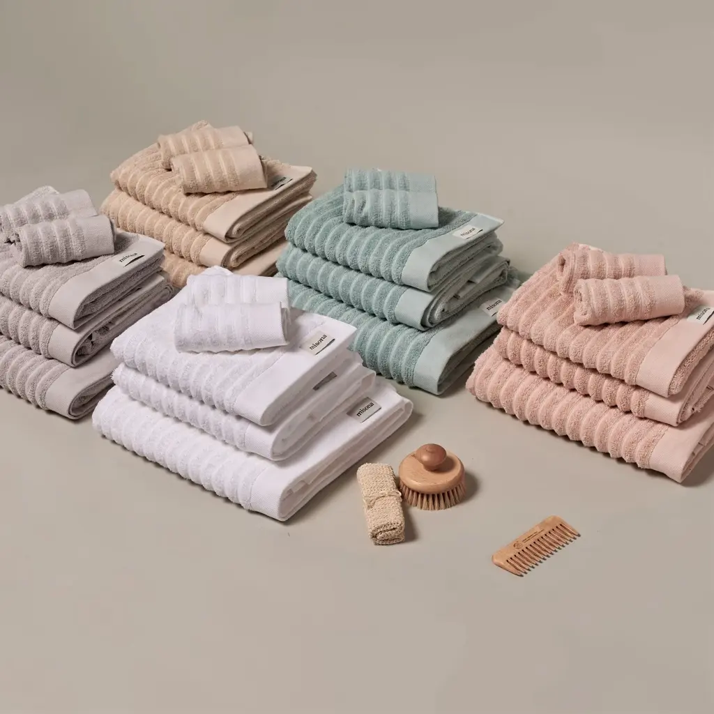 Bring premium organic beauty to your daily routine with these stylish, ribbed towels. This pre-made Minimo Towel Bale has all the essential towels you’d need for everyday use in the bathroom. Made using the finest organic cotton fibres, these textured towels are kind on the skin and perfect for wrapping up in after a relaxing hot bath. Luxuriously thick, ultra-absorbent and most importantly leaving minimal environmental impact. We have a broad range of on-trend colours available to make sure you find the right style to compliment your bathroom décor. A Minimo Towel Bale includes: 2 face cloths, 1 hand towel, 1 bath towel and 1 bath sheet.