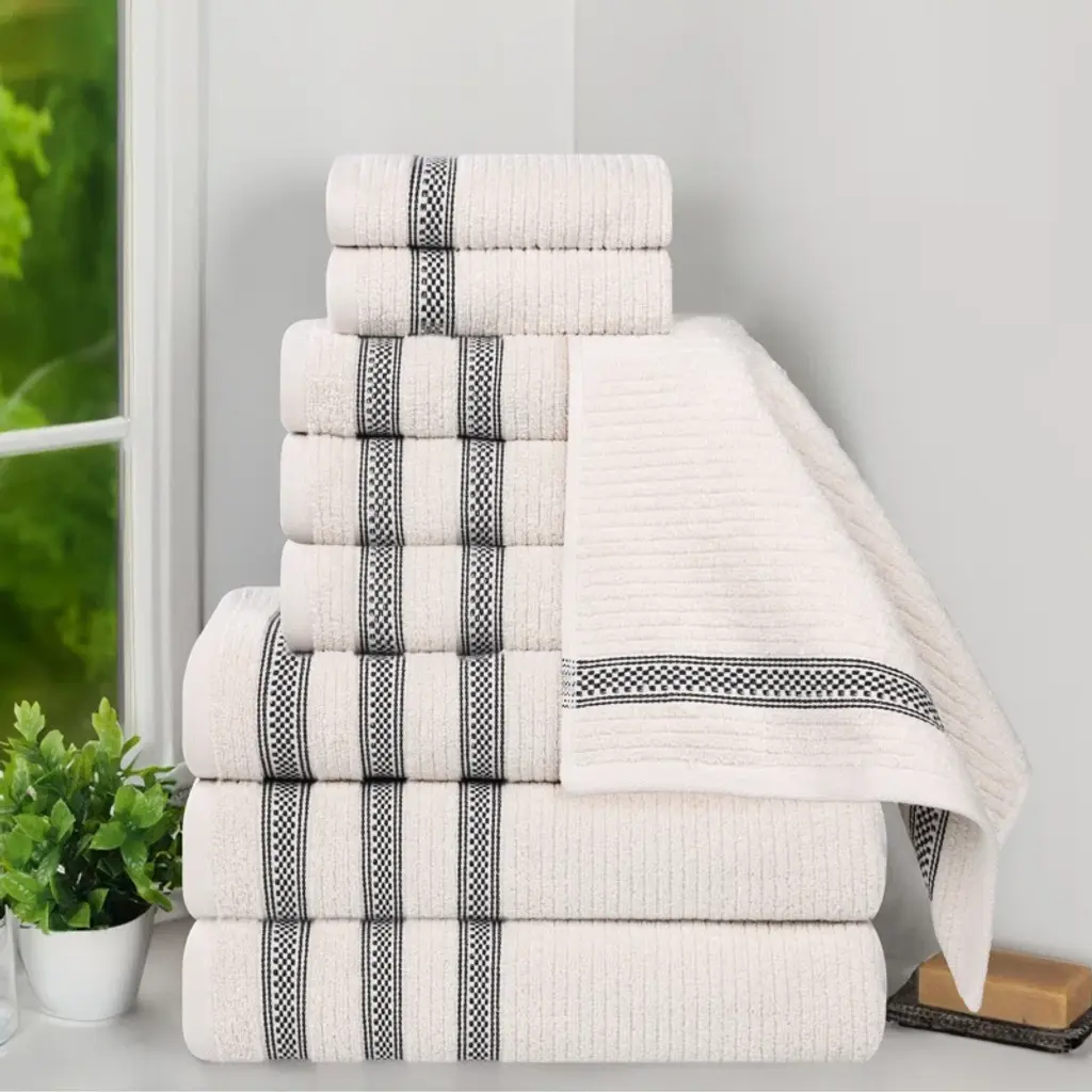 Orley Zero Twist Cotton Ribbed Modern Geometric Border Soft Highly-Absorbent Assorted 9 Piece Bathroom Towel Set