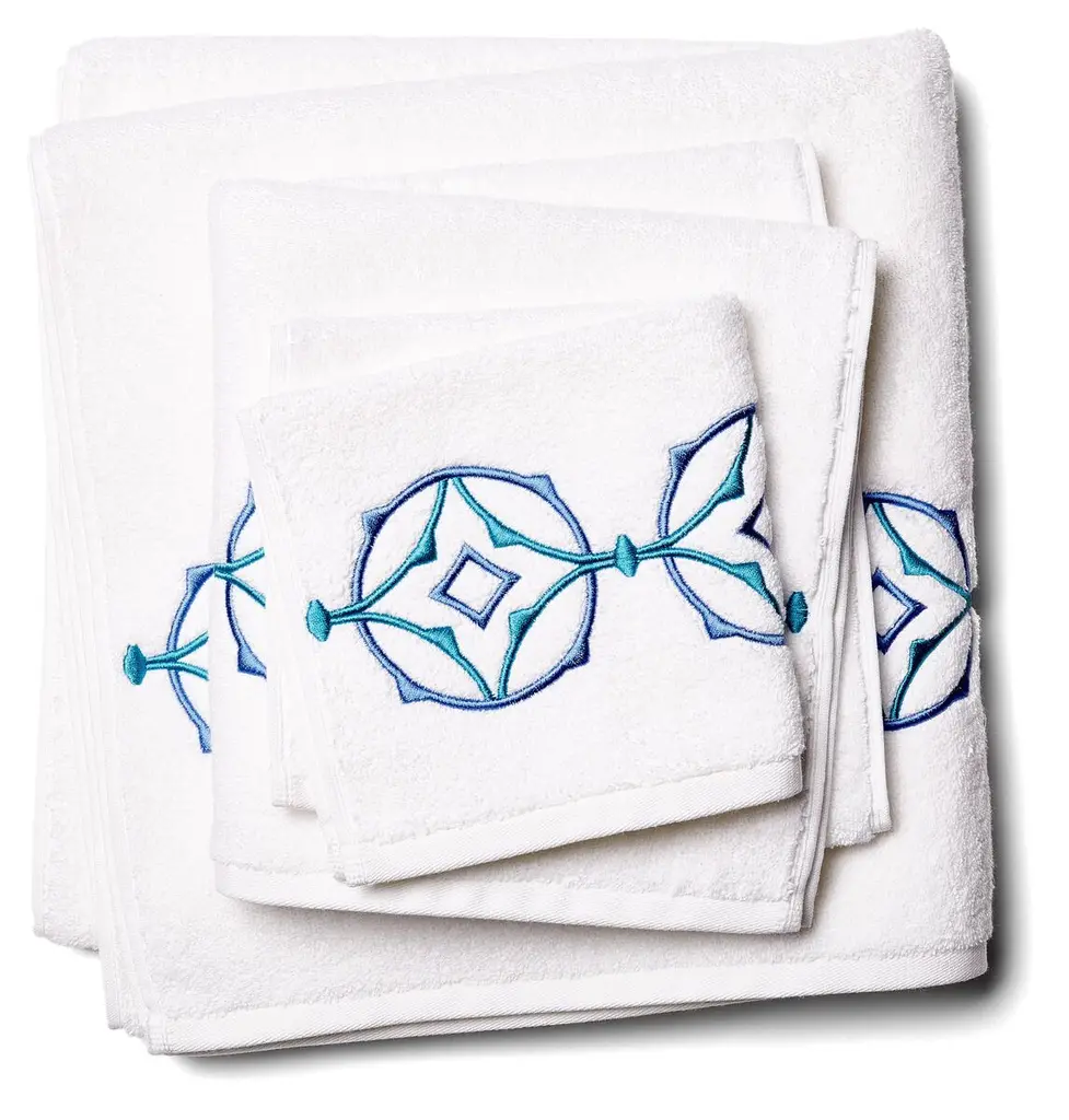 Pamper yourself with this set of spa-worthy, 700-grams-per-square-meter weight towels. Finished with an embroidered quatrefoil motif, these super-soft combed cotton towels are as elegant as they are thirsty.