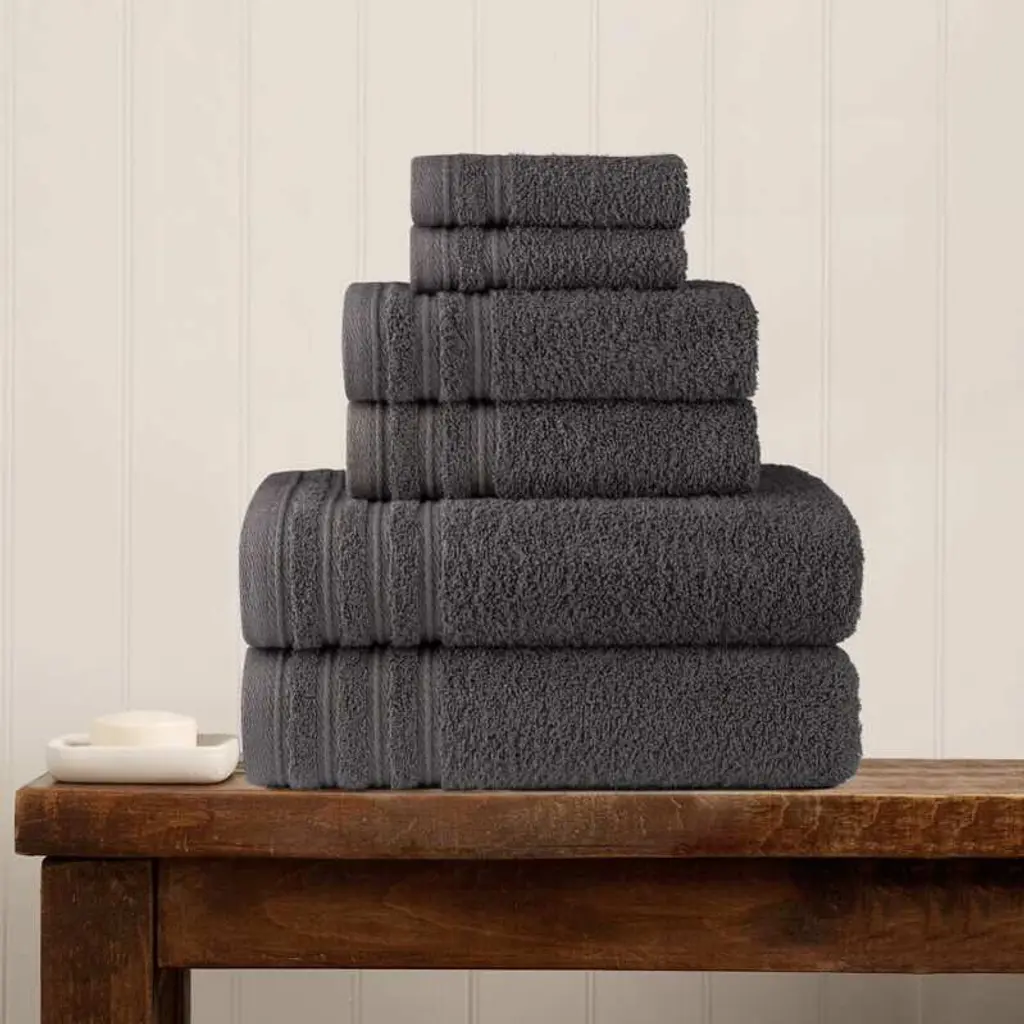 Indulge in the plush feel of this 6-piece towel set, crafted from 100% cotton for a luxuriously thick and ultra-absorbent feel. The set includes two bath towels, two hand towels, and two washcloths, ensuring you have everything you need to elevate your daily routine. Each towel boasts a soft texture, and is designed to be gentle on your skin, making them ideal for everyday use. Plus, this set features a neutral color palette that complements any bathroom decor.