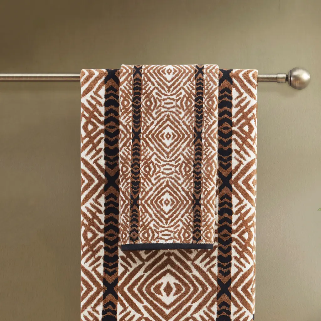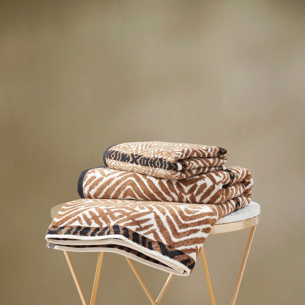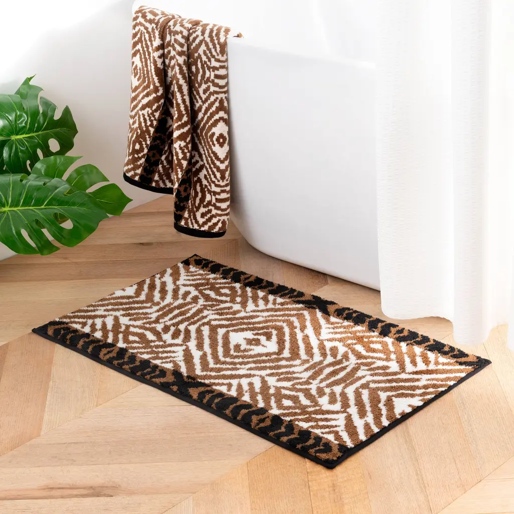 Lend refreshing style to your bathroom with the Rochelle Porter Tiger Tiger Towel that blends exotic flair with a luxurious feel, bringing a touch of global elegance to your space. Striking lines and motifs give your bathroom a bold touch of color inspired by adventure. The cotton bath essential features a shirred velour mixed with a looped terry for contrast and a soft, absorbent feel with every use. Designed for abundant living, Rochelle Porter Design is a black-owned and woman-founded business enriching life with vibrancy while practicing low-waste production methods to pour back into our communities.