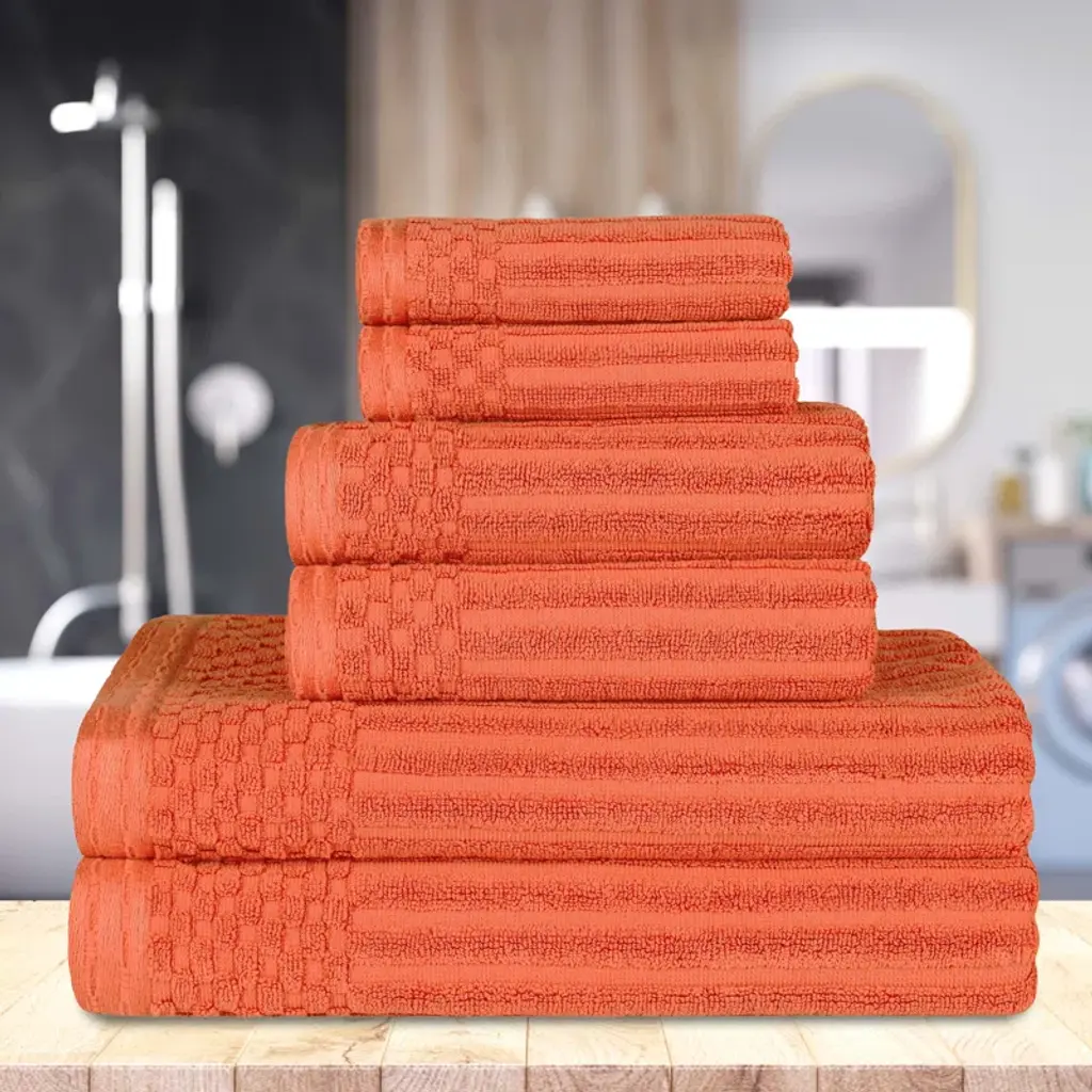 Ruvins Cotton Highly Absorbent 6-Piece Solid And Checkered Border Towel Set