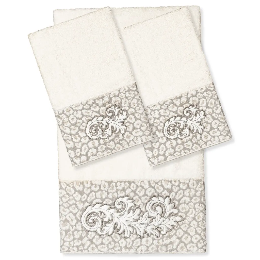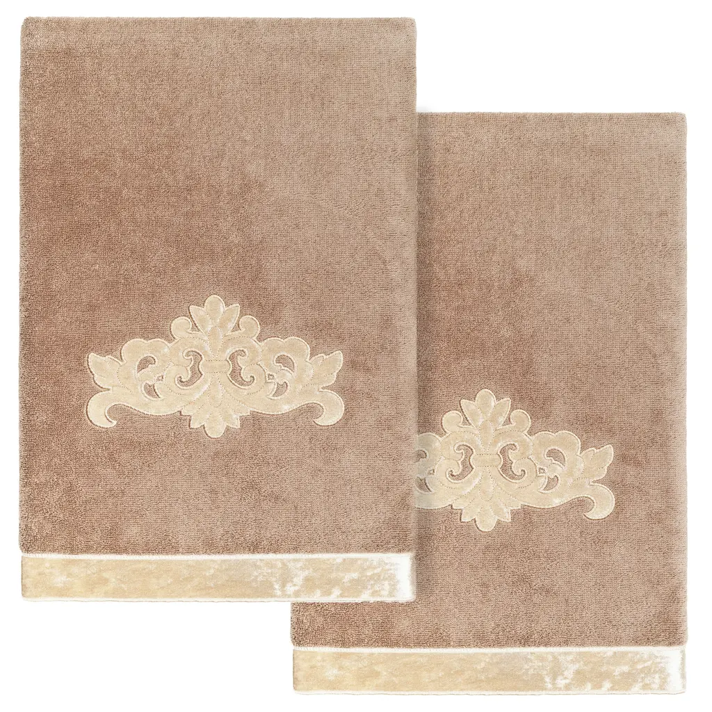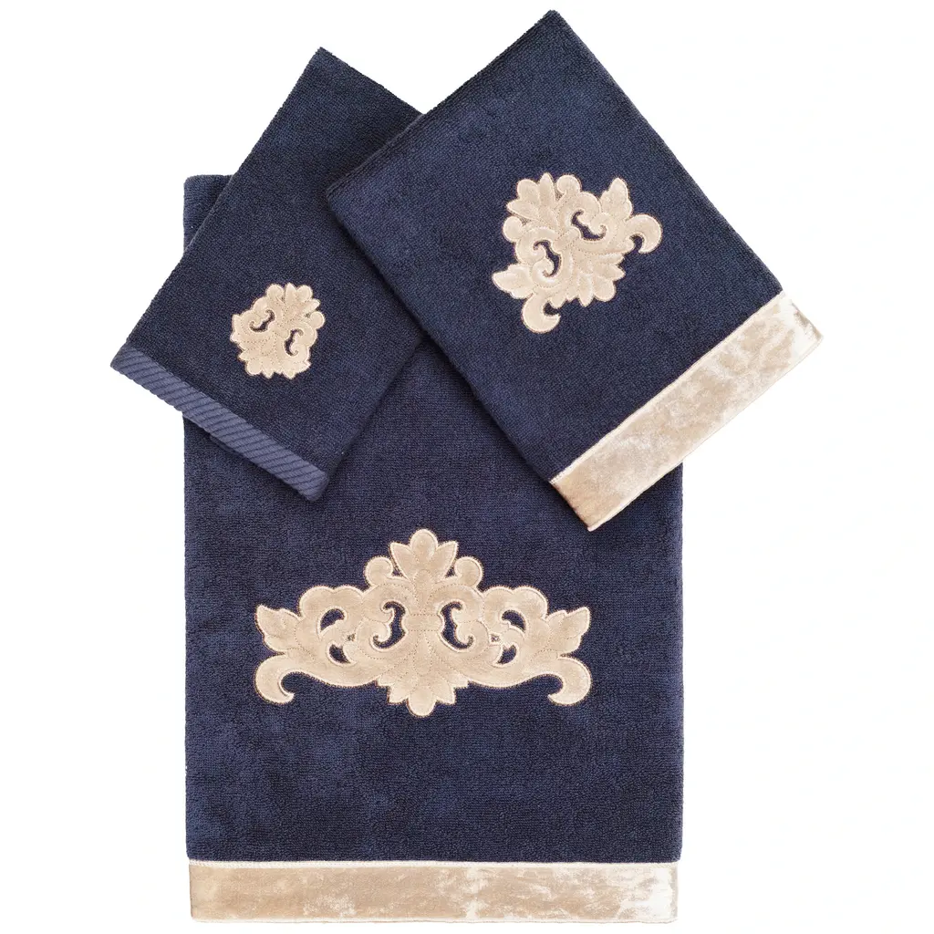 100% Cotton velour towel * Add a final touch to your elegant living with this decorative towel by Sherry Kline. * This decorative towel is designed by the Austin Horn brand design team and each piece is expertly handcrafted by artisans with the most luxurious fabrics and decorative trims. * This towel can be a luxury and easy addition to any bathroom to scale-up the ambiance tastefully. * This decorative towel can be an ideal gift for any occasion. * Care instructions: Spot cleaning recommended.