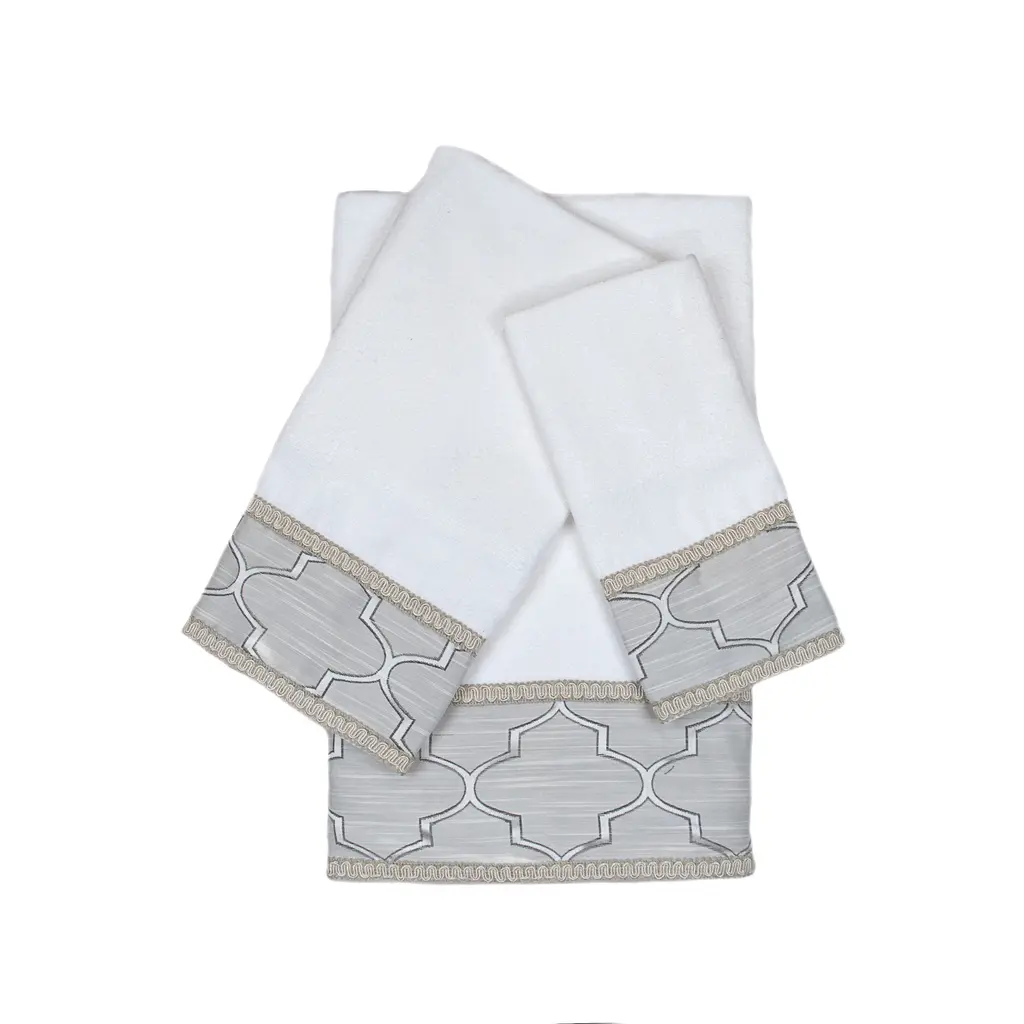 Sherry Kline Prescott Brown 3-Piece Decorative Towel Set, Jacquard Fabric Band, Double Row Of Gimp Braid 1 Bath Hand & Tip Towel - Taupe