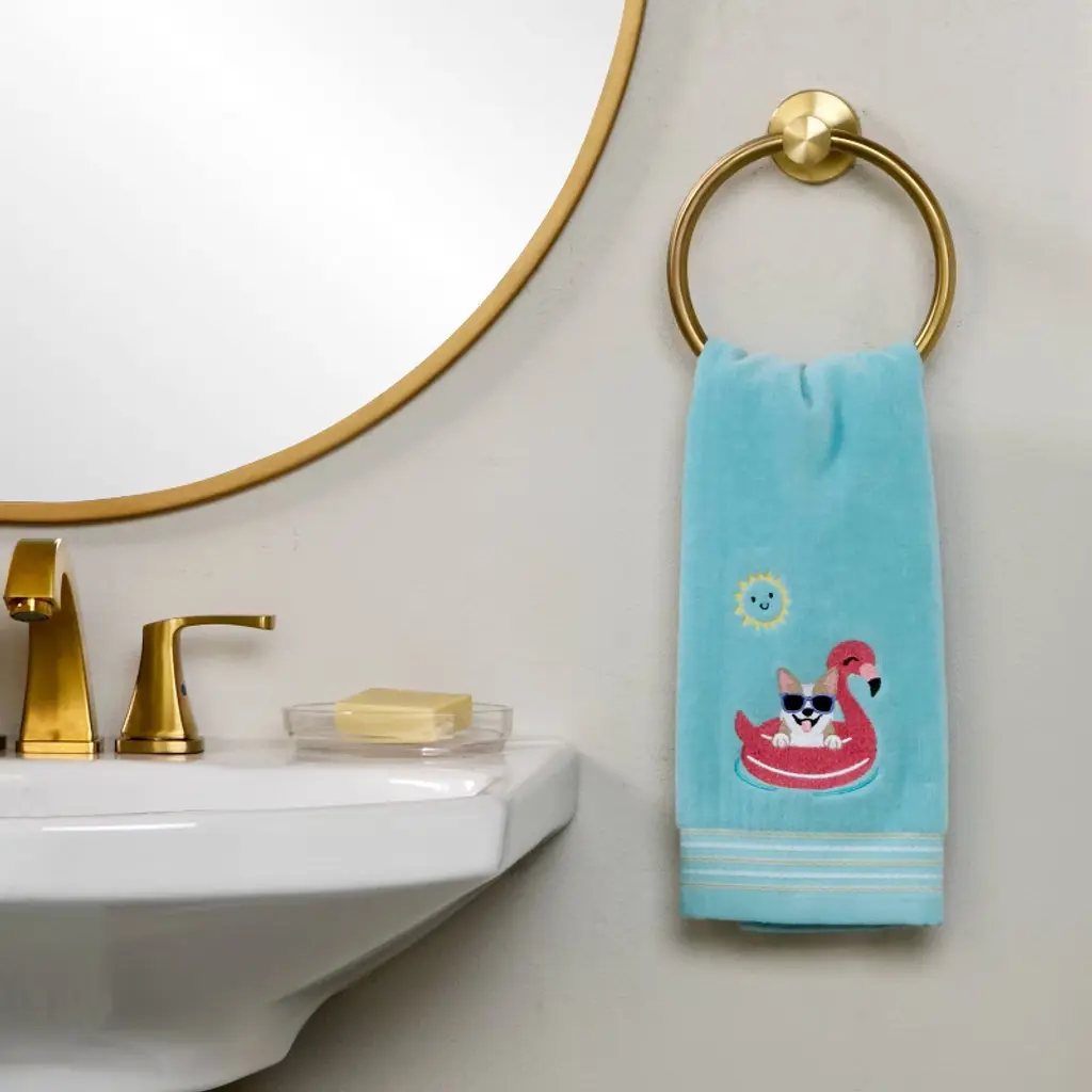Bring fun in the sun home with this cute 2-piece hand towel set. Made of soft cotton velour, each towel features embroidery of a corgi floating on a flamingo raft & striped dobby trim. They can be used in the bath, kitchen, bar area, or any sink space. At SKL Home we bring personality, fun, and flair to your space with the best in home décor. We're a close-knit, small company full of big ideas in a wide variety of styles. From upbeat and modern, to classic and cozy, SKL Home has a look to complement any space. Combining 40+ years’ experience, global design inspiration, and the best fabrications, our employee-owned company continues to lead the way in home accessories.