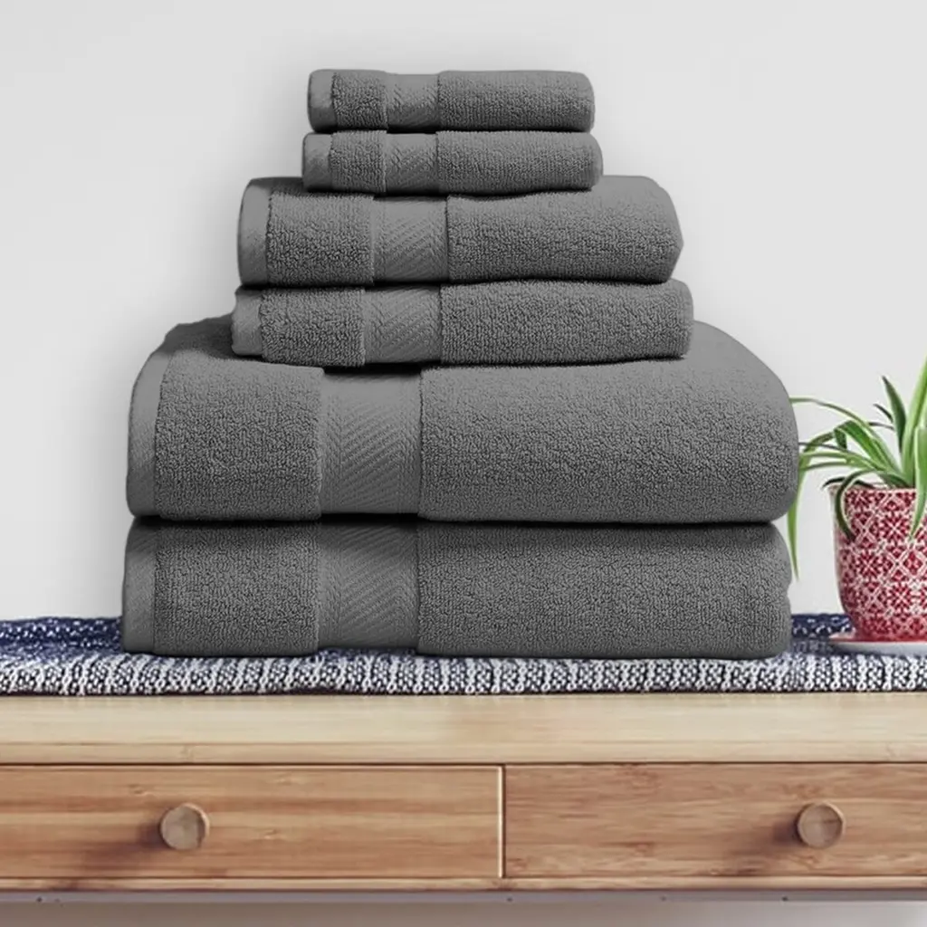Soft And Plush Bath Towel Set - 100 Percent Cotton - 6-Piece - N/a - Grey