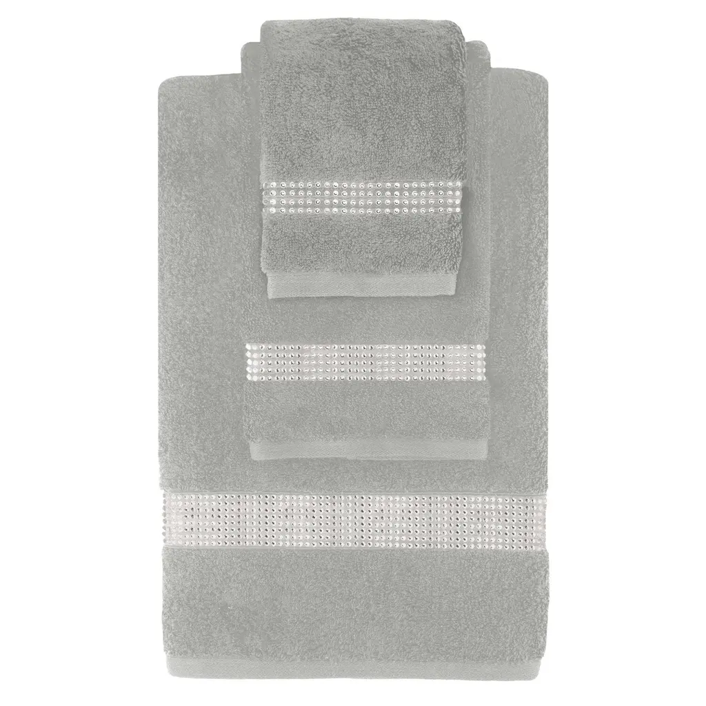 Sparkles Home Stripe Rhinestone 3 Piece Towel Set - Gray