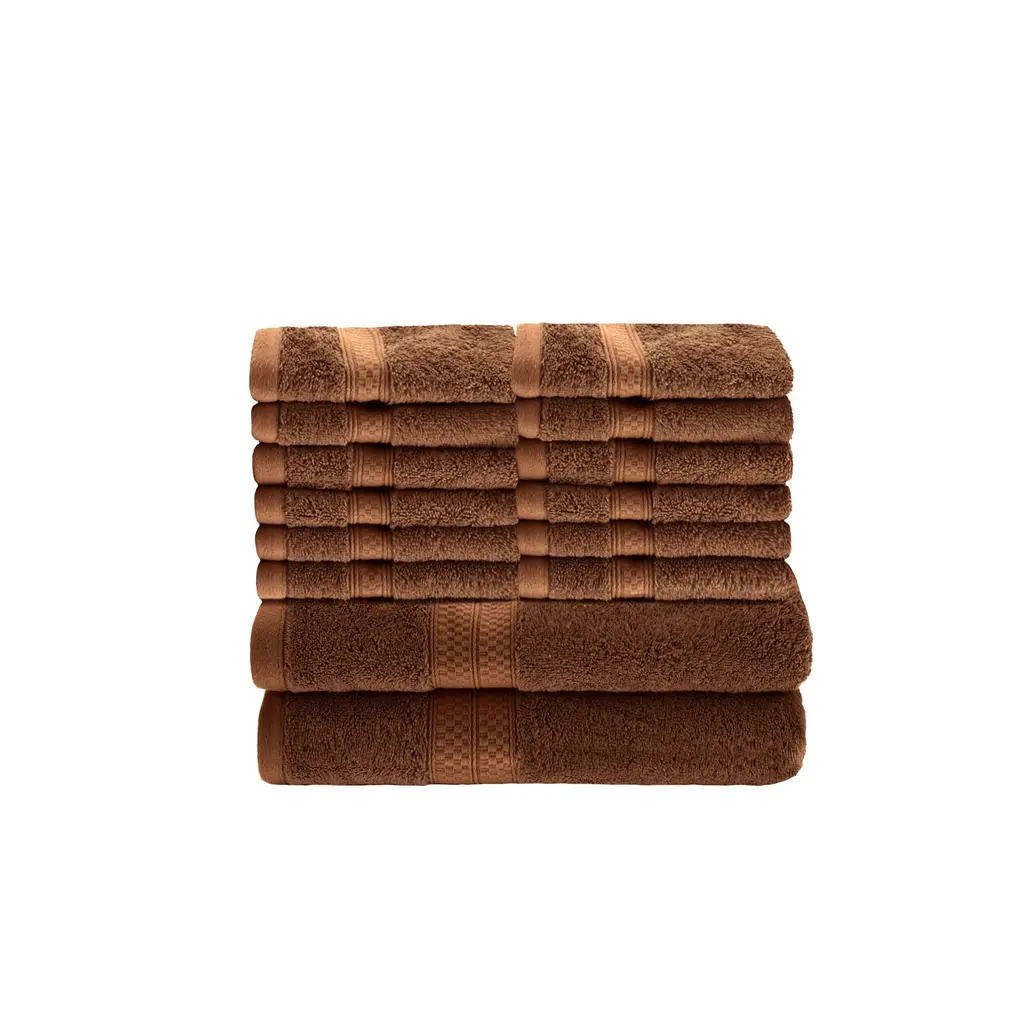 Superior 14 Piece Towel Set, Rayon From Bamboo And Cotton (2 Bath, 12 Face Towels) - Cocoa