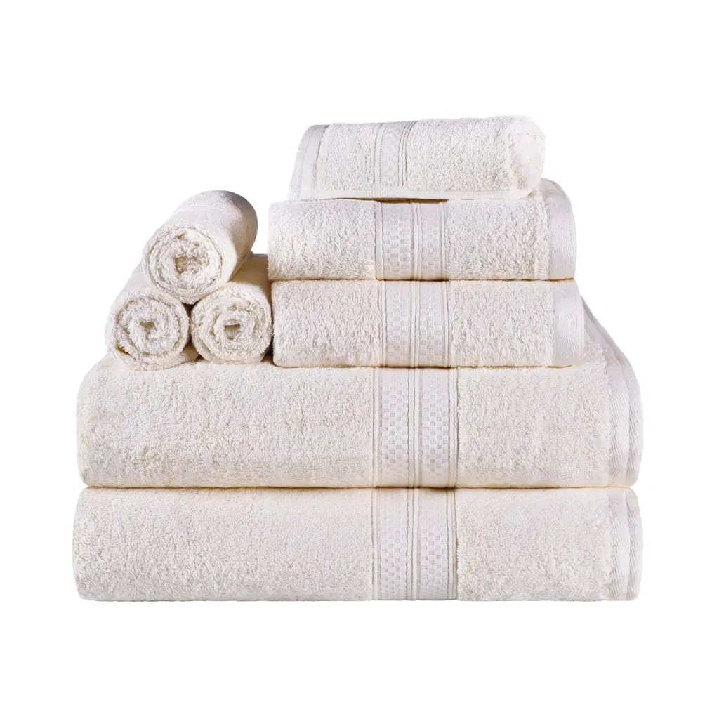 Superior 8 Piece Bath Towel Set, Rayon From Bamboo And Cotton - Ivory