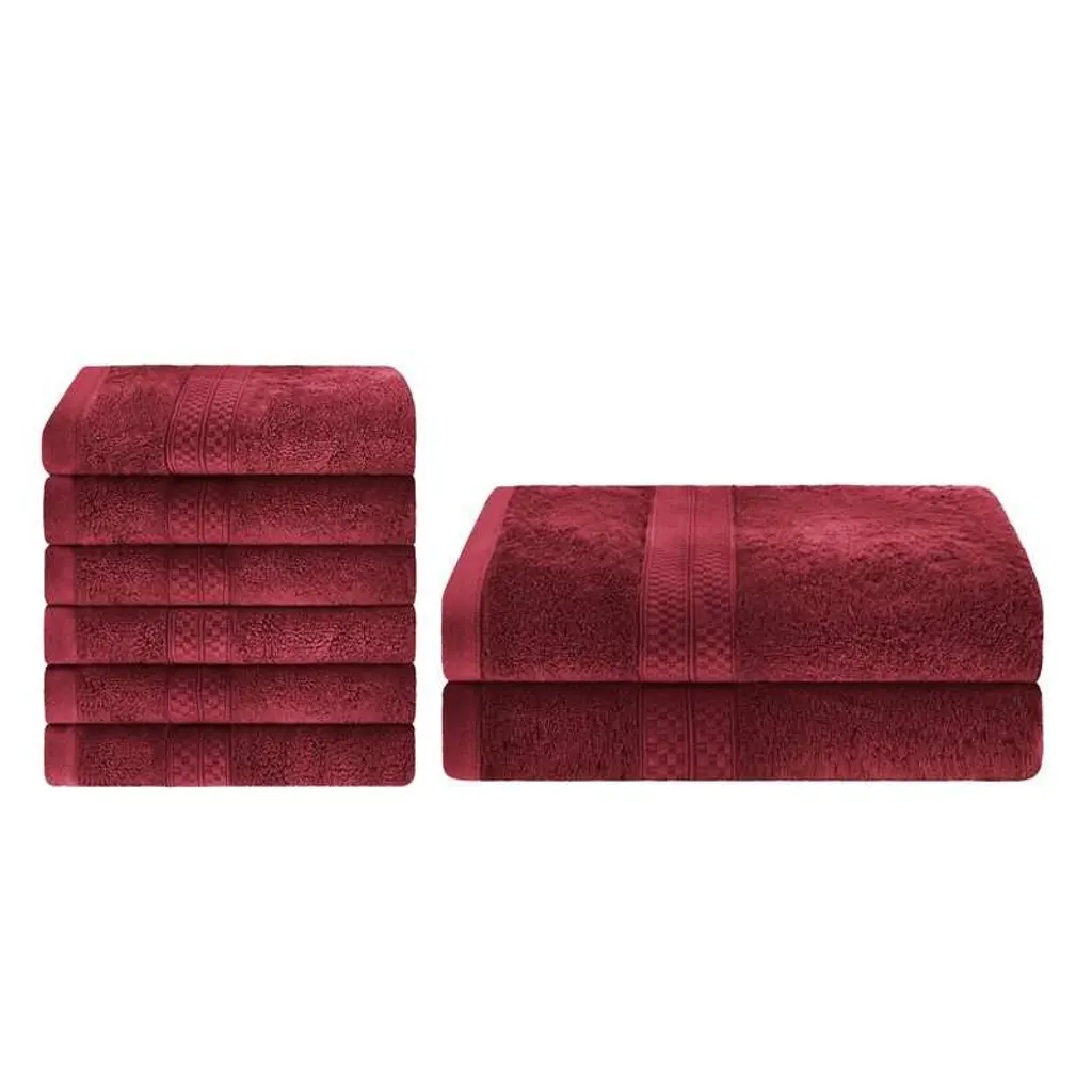 Superior 8 Piece Towel Set (2 Piece Bath Towel And 6 Piece Hand Towel), Rayon From Bamboo And Cotton - Crimson