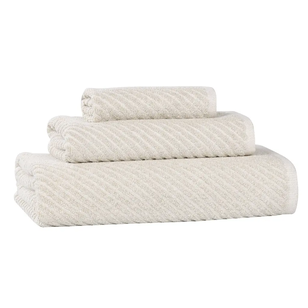 Experience the perfect balance of softness and absorbency with the Superior Amelia Viscose Cotton Blend 3 Piece Towel Set. Crafted from 80% cotton and 20% viscose, these towels provide exceptional softness and absorbency while showcasing a unique aesthetic. The modern, diagonal striped pattern adds an eye-catching element that elevates any bathroom. Available in a diverse palette of elegant colors, this set allows you to personalize your space with style. With a soft medium towel weight, these towels are durable and quick drying. Let them transform your bathroom into a serene haven of style and functionality.Features: Dimensions: