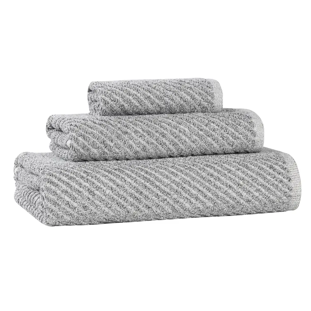 Experience the perfect balance of softness and absorbency with the Superior Amelia Viscose Cotton Blend 3 Piece Towel Set. Crafted from 80% cotton and 20% viscose, these towels provide exceptional softness and absorbency while showcasing a unique aesthetic. The modern, diagonal striped pattern adds an eye-catching element that elevates any bathroom. Available in a diverse palette of elegant colors, this set allows you to personalize your space with style. With a soft medium towel weight, these towels are durable and quick drying. Let them transform your bathroom into a serene haven of style and functionality.Features: Dimensions: