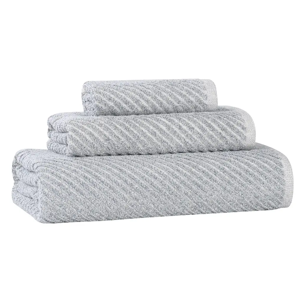 Experience the perfect balance of softness and absorbency with the Superior Amelia Viscose Cotton Blend 3 Piece Towel Set. Crafted from 80% cotton and 20% viscose, these towels provide exceptional softness and absorbency while showcasing a unique aesthetic. The modern, diagonal striped pattern adds an eye-catching element that elevates any bathroom. Available in a diverse palette of elegant colors, this set allows you to personalize your space with style. With a soft medium towel weight, these towels are durable and quick drying. Let them transform your bathroom into a serene haven of style and functionality.Features: Dimensions: