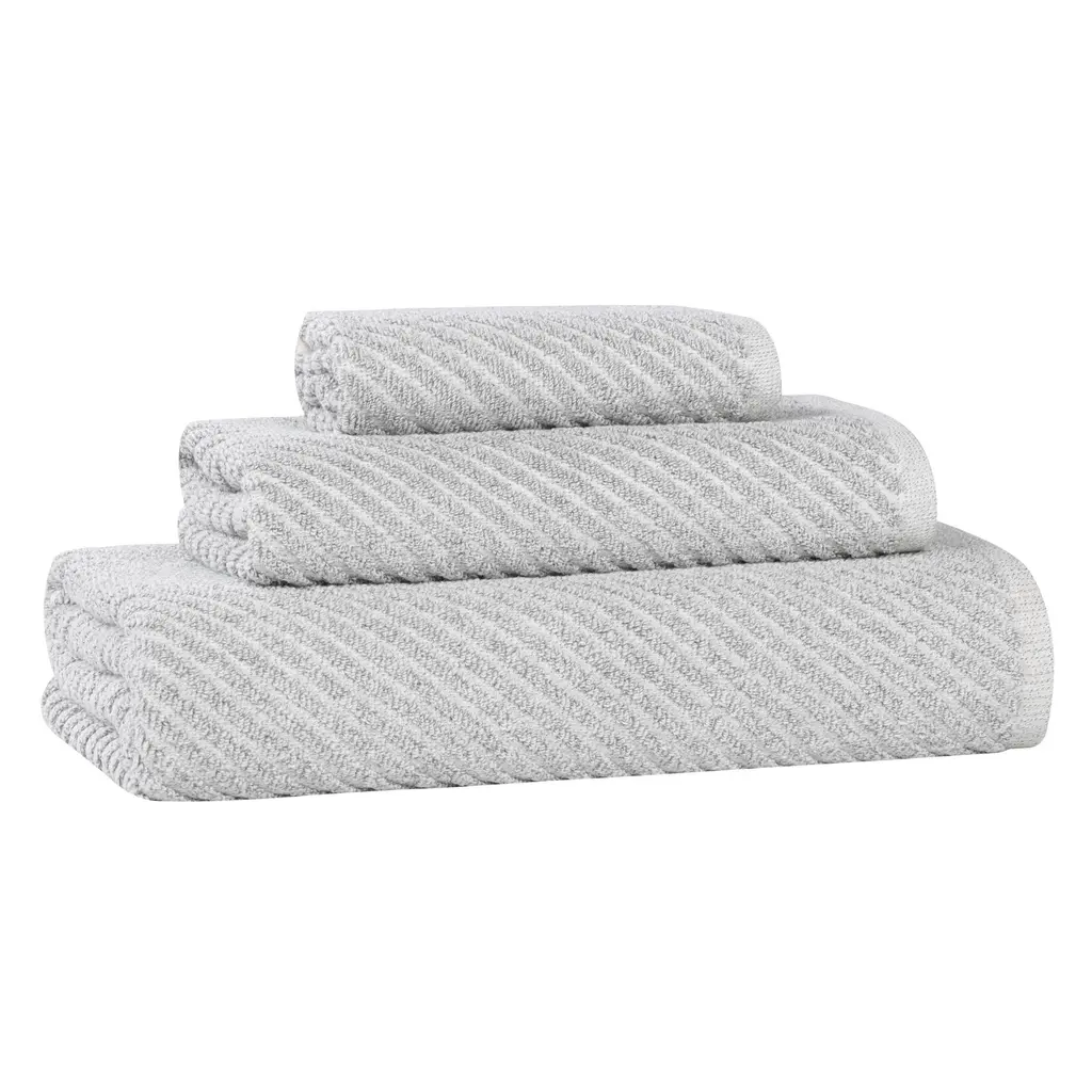 Experience the perfect balance of softness and absorbency with the Superior Amelia Viscose Cotton Blend 3 Piece Towel Set. Crafted from 80% cotton and 20% viscose, these towels provide exceptional softness and absorbency while showcasing a unique aesthetic. The modern, diagonal striped pattern adds an eye-catching element that elevates any bathroom. Available in a diverse palette of elegant colors, this set allows you to personalize your space with style. With a soft medium towel weight, these towels are durable and quick drying. Let them transform your bathroom into a serene haven of style and functionality.Features: Dimensions: