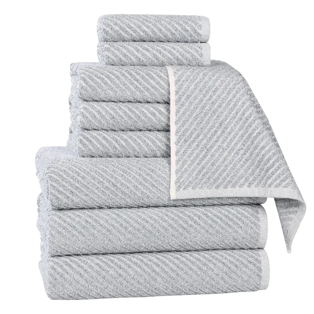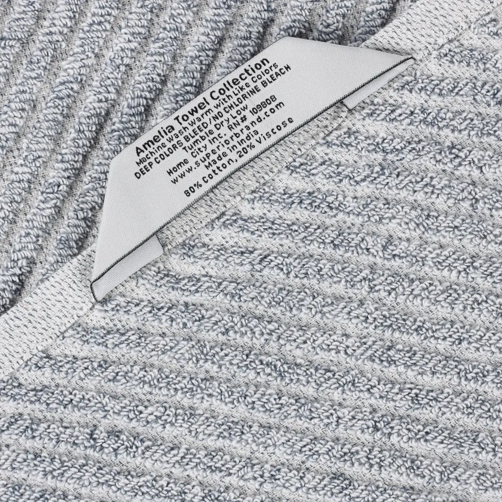 Experience the perfect balance of softness and absorbency with the Superior Amelia Viscose Cotton Blend 9 Piece Towel Set. Crafted from 80% cotton and 20% viscose, these towels provide exceptional softness and absorbency while showcasing a unique aesthetic. The modern, diagonal striped pattern adds an eye-catching element that elevates any bathroom. Available in a diverse palette of elegant colors, this set allows you to personalize your space with style. With a soft medium towel weight, these towels are durable and quick drying. Let them transform your bathroom into a serene haven of style and functionality.Features: Dimensions: