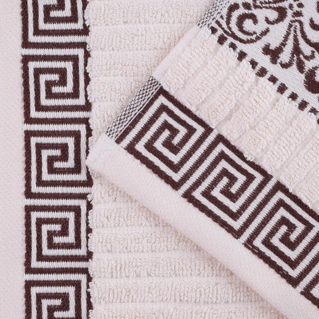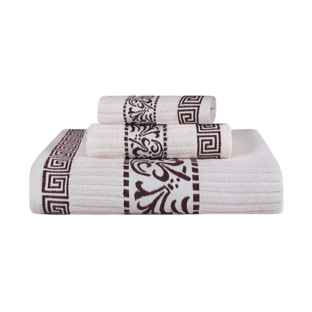 Superior Athens Cotton Floral Border Greek Key 3-Piece Towel Set - Ivory/chocolate