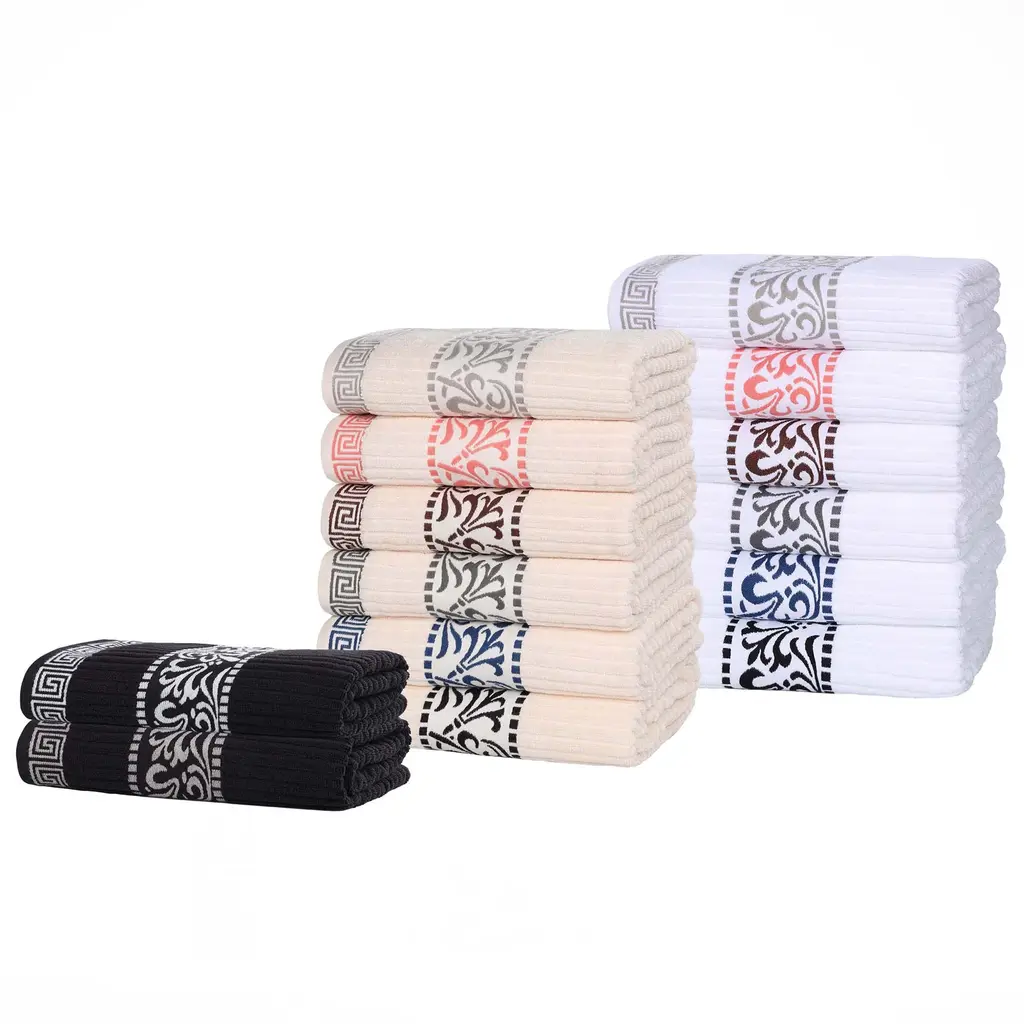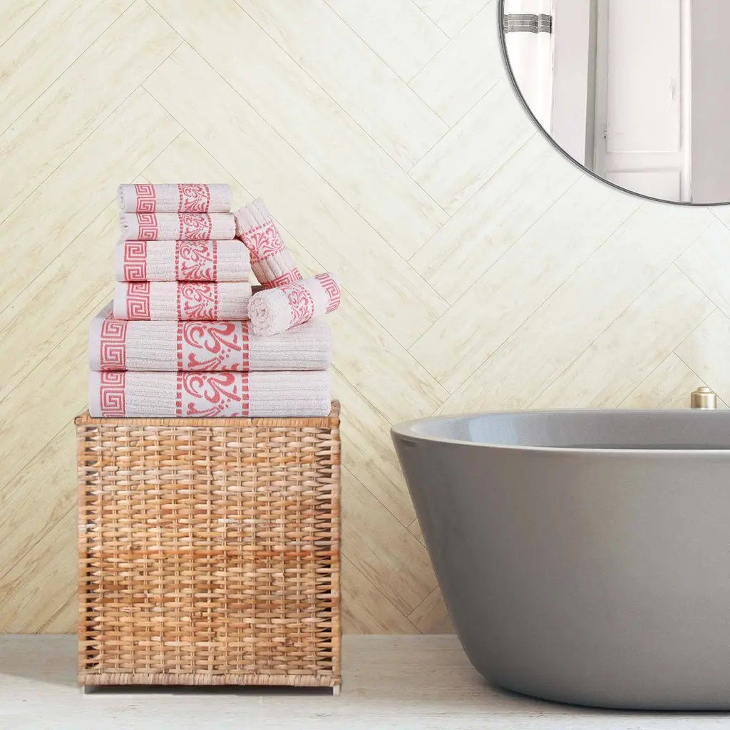 Superior Athens Cotton Floral Border Greek Key 8-Piece Towel Set - Coral