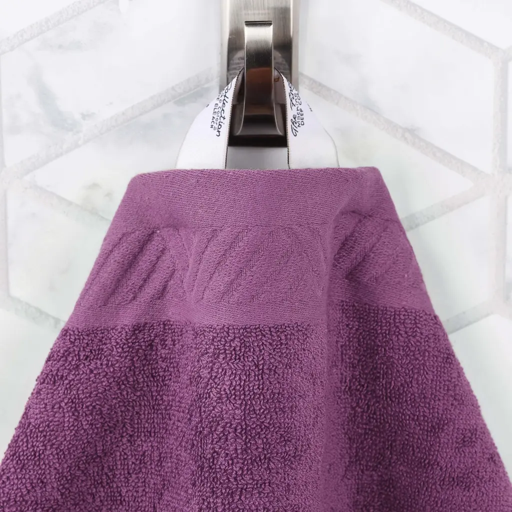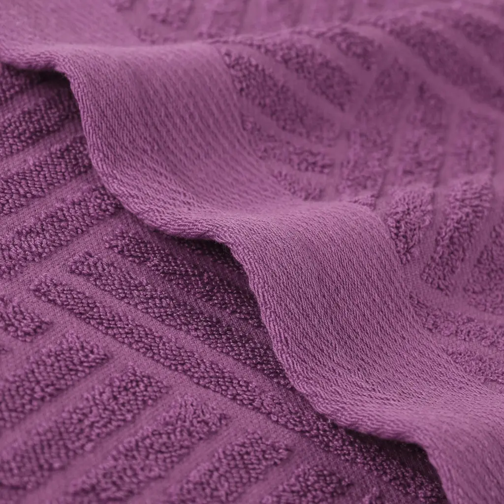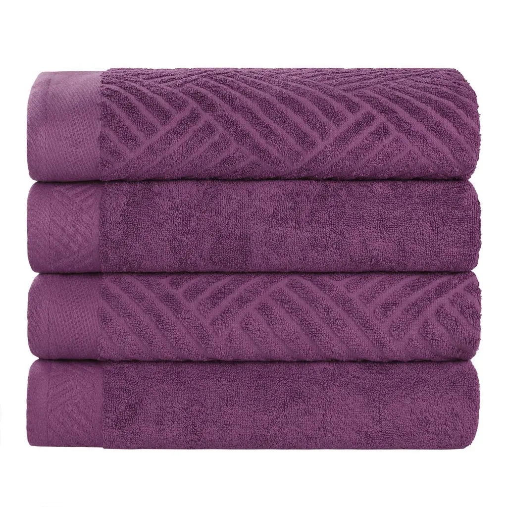 Superior Basketweave Egyptian Cotton Jacquard And Solid Bath Towel Set Of 4 - Majestic Purple