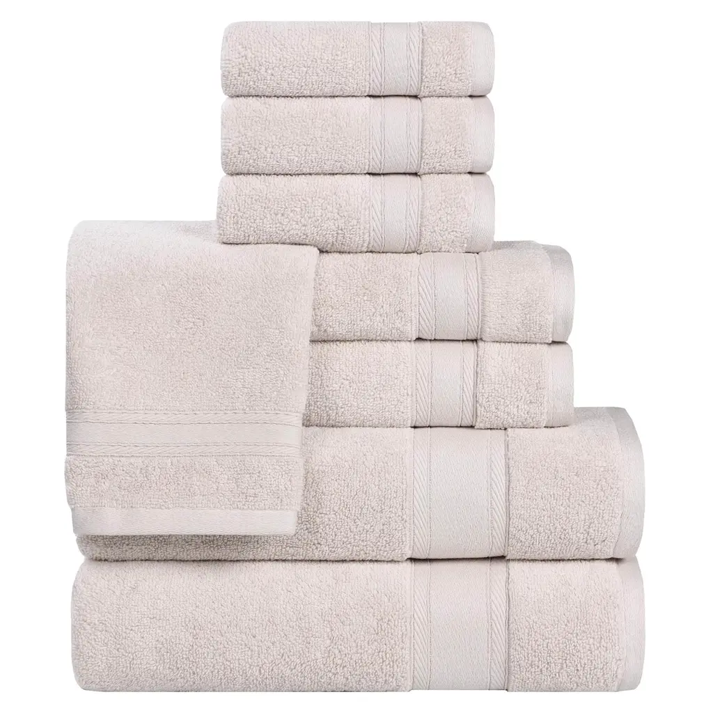 Superior Belmont Zero Twist Cotton Medium Weight Ultra-Soft 8 Piece Towel Set - Silver