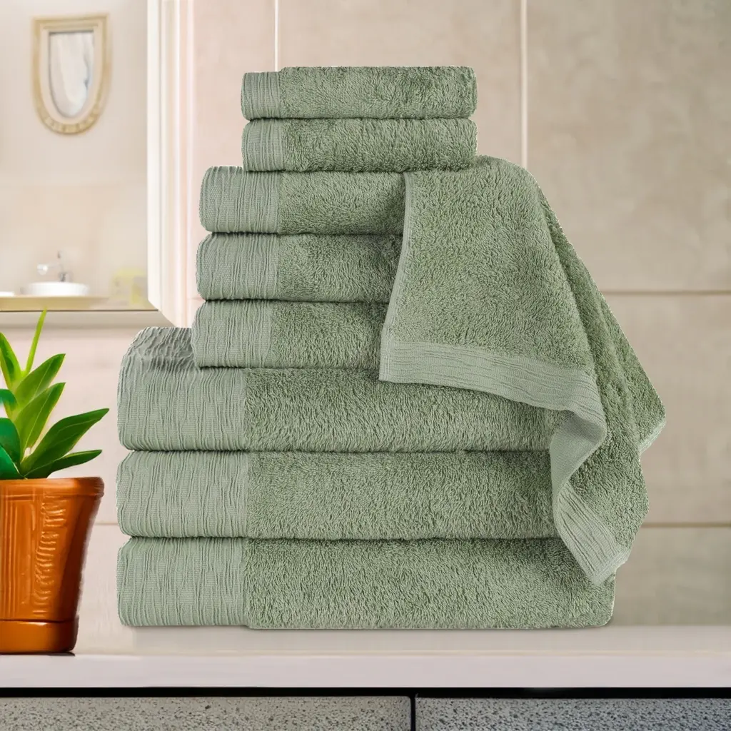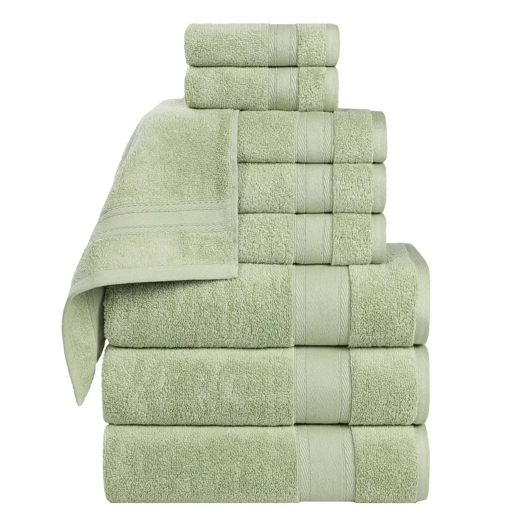 Superior Belmont Zero Twist Cotton Medium Weight Ultra-Soft 9 Piece Towel Set - Green