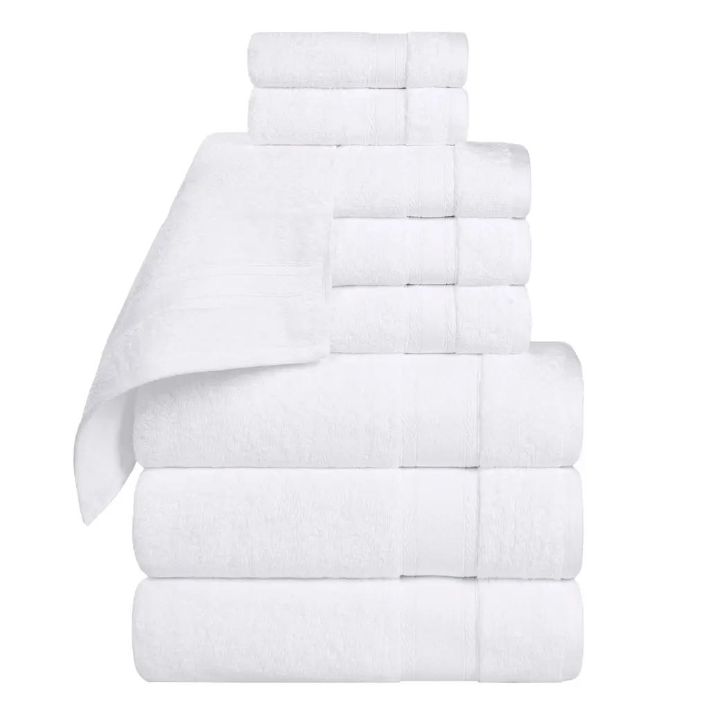 Superior Belmont Zero Twist Cotton Medium Weight Ultra-Soft 9 Piece Towel Set - White