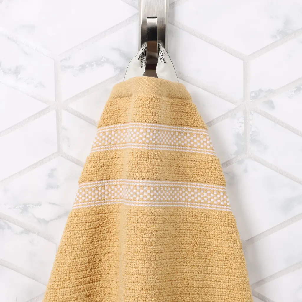 Superior Brea Zero Twist Cotton Ribbed Modern 12 Piece Bathroom Towel Set - Gold