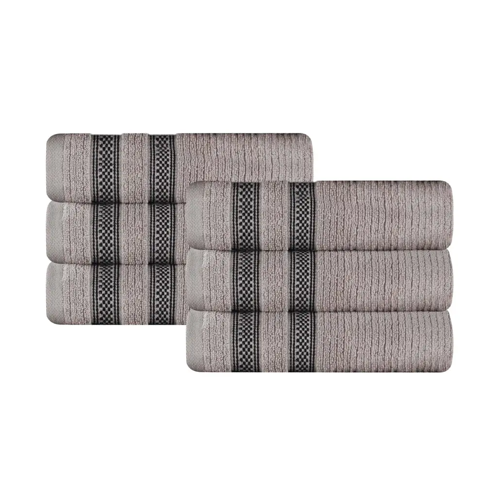 Superior Brea Zero Twist Cotton Ribbed Modern Hand Towel Set Of 6 - Grey