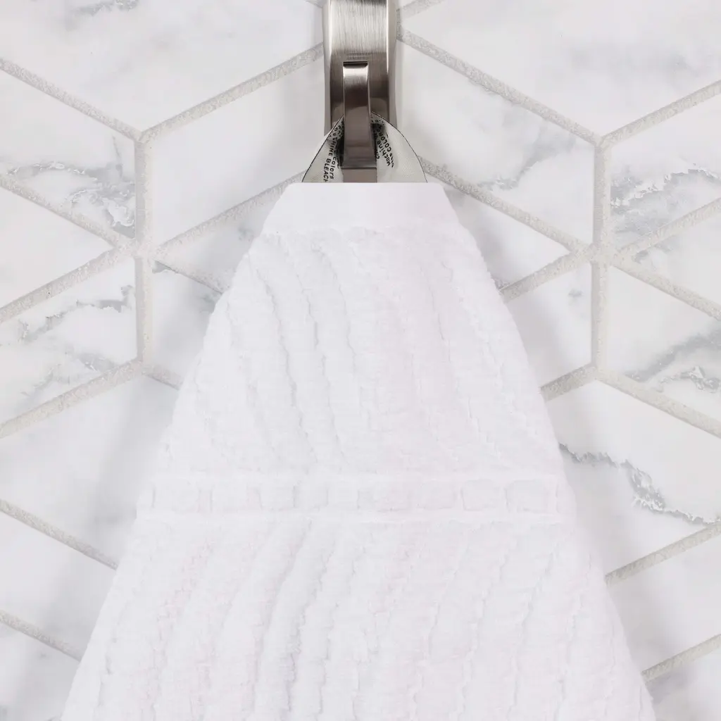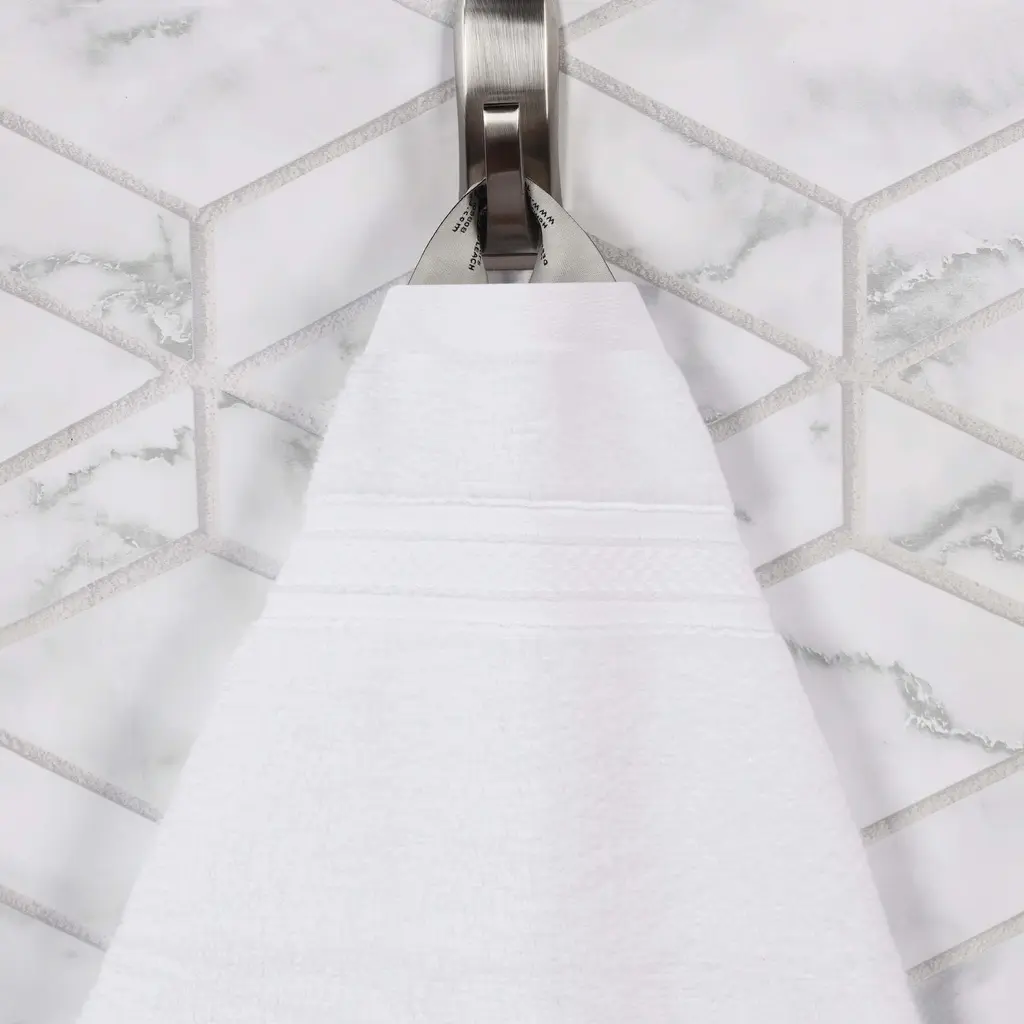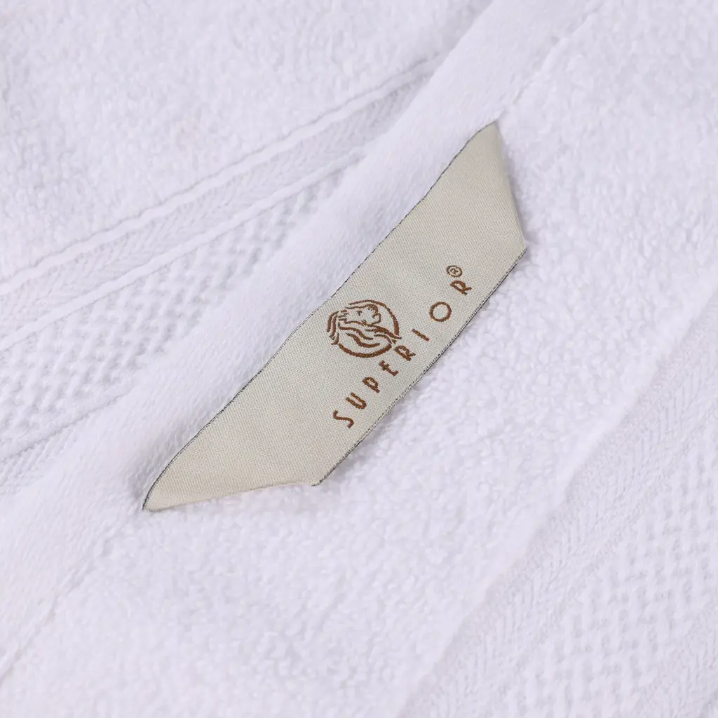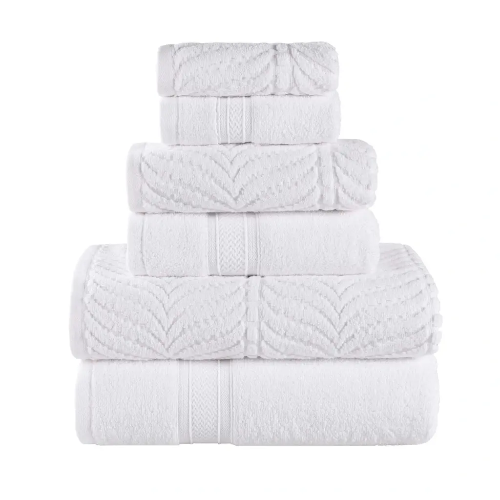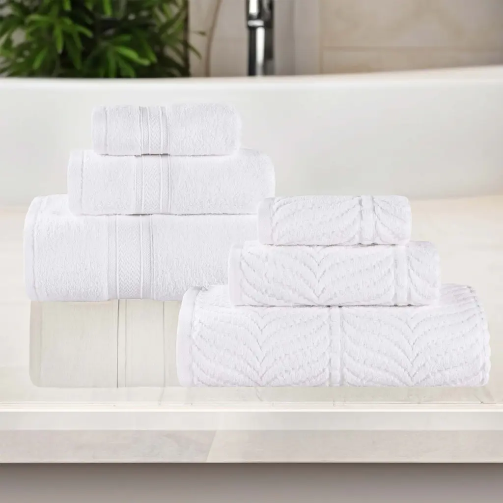 Superior Chevron Zero Twist Solid And Jacquard Cotton 6 Piece Towel Set - White