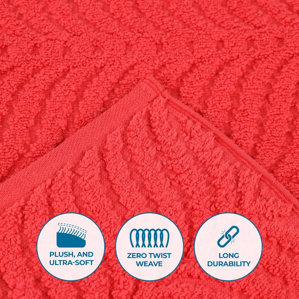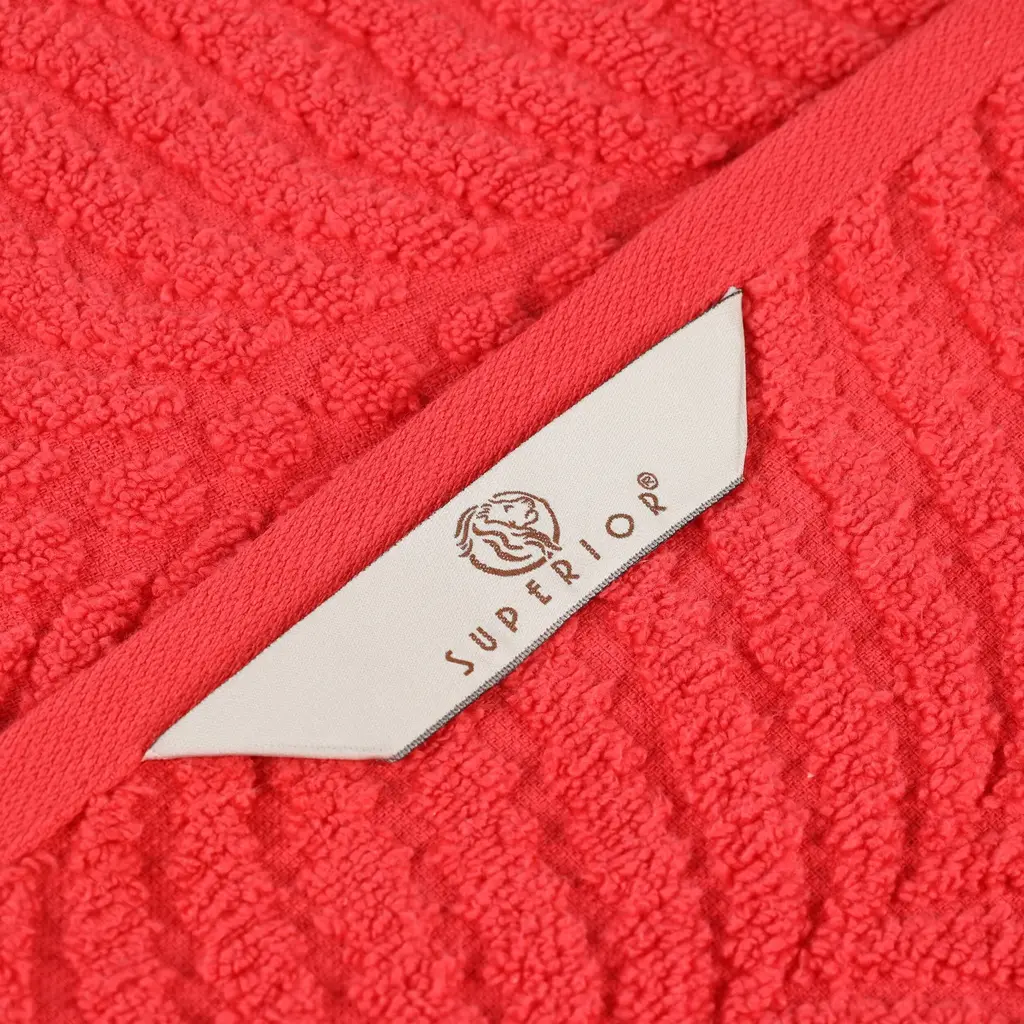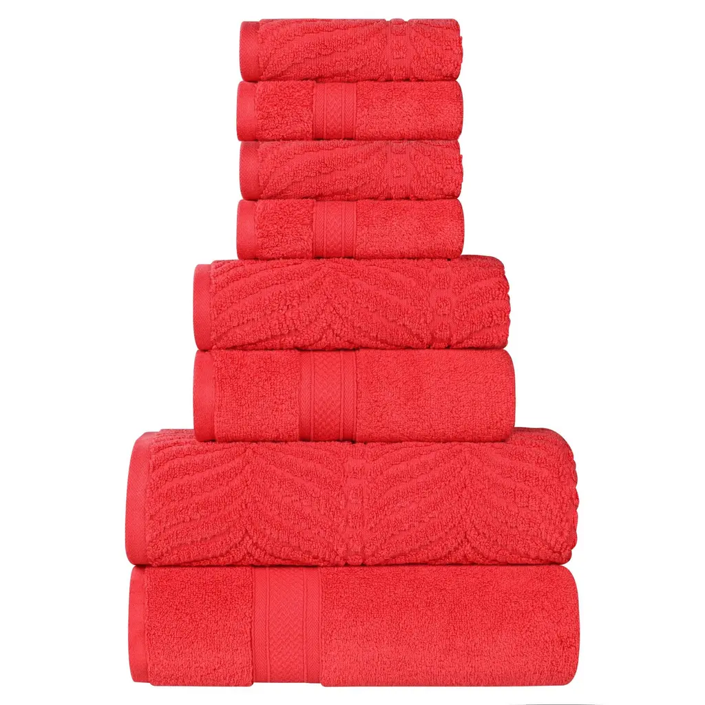 Superior Chevron Zero Twist Solid And Jacquard Cotton 8 Piece Towel Set - Red