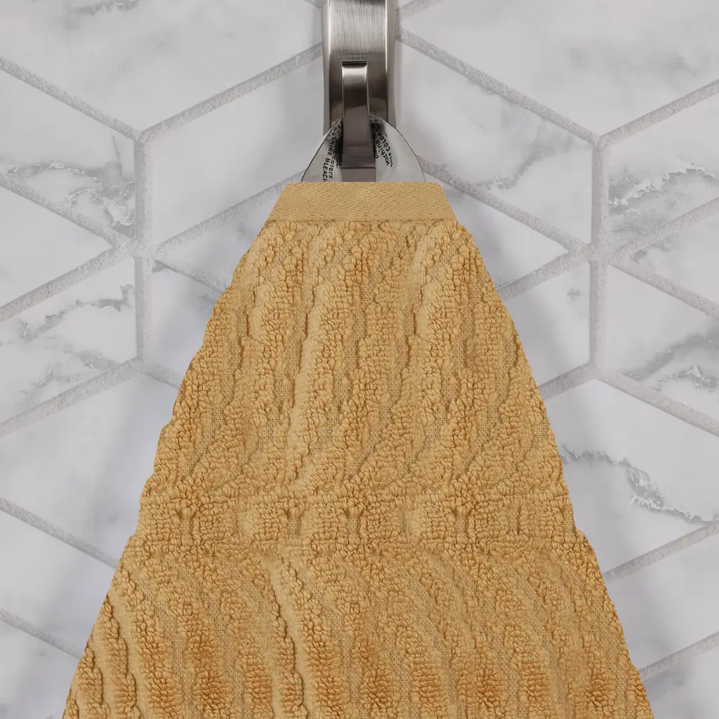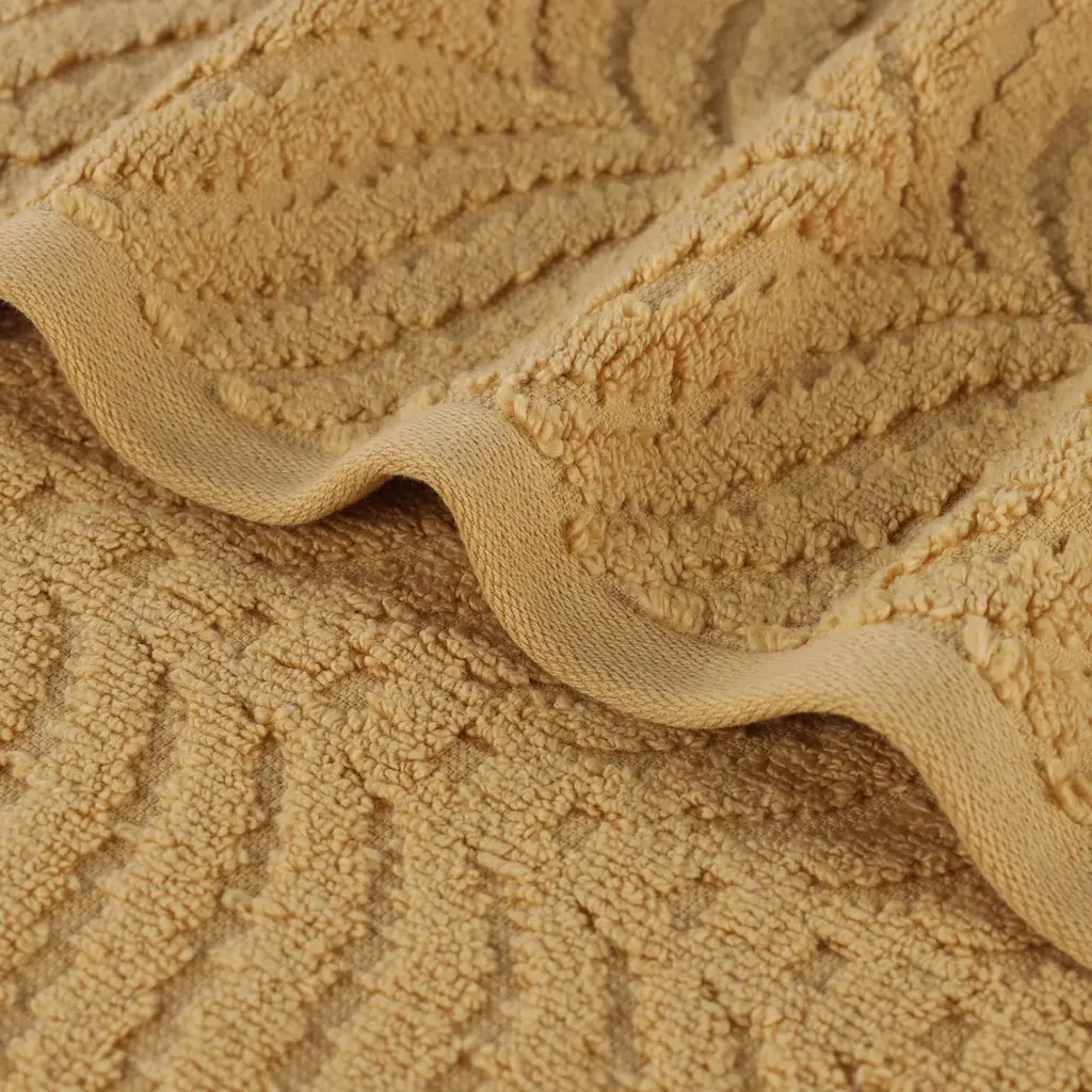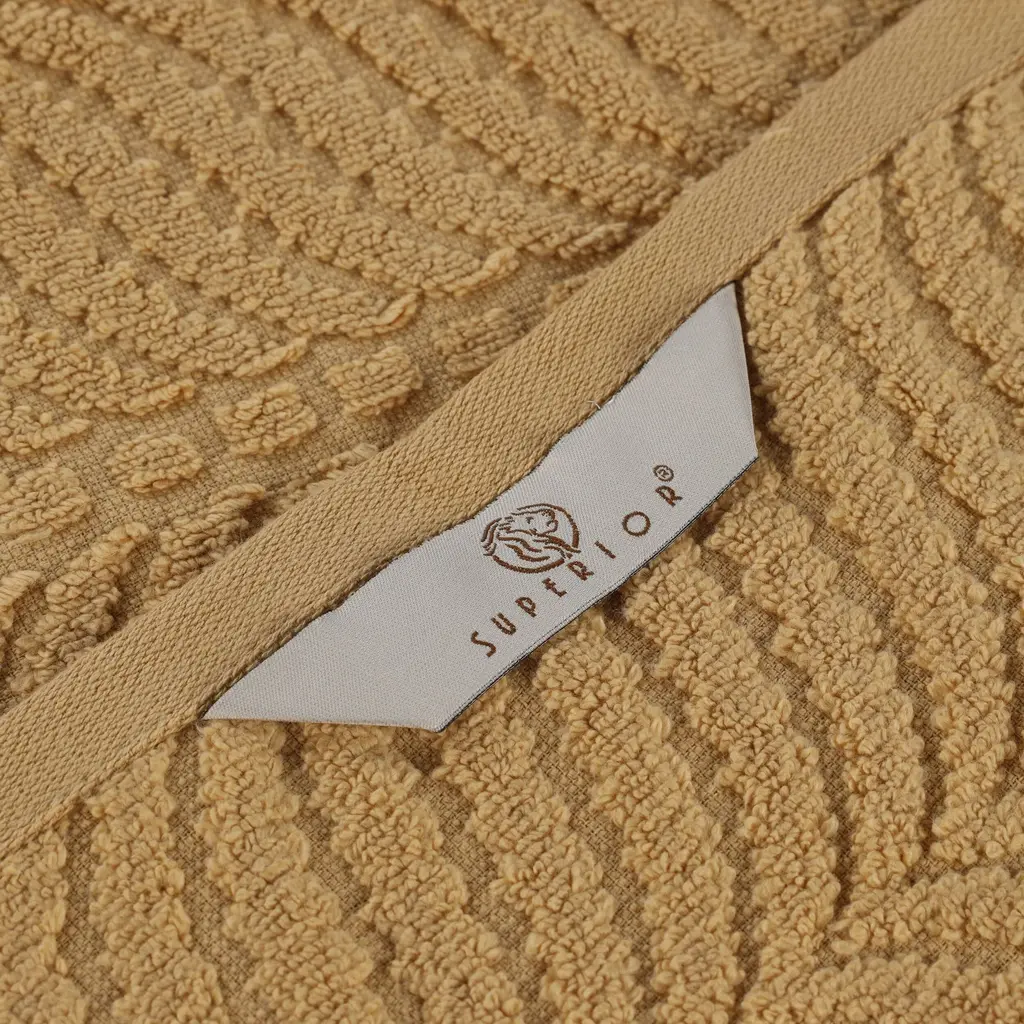 Superior Chevron Zero Twist Solid And Jacquard Cotton 9 Piece Towel Set - Gold