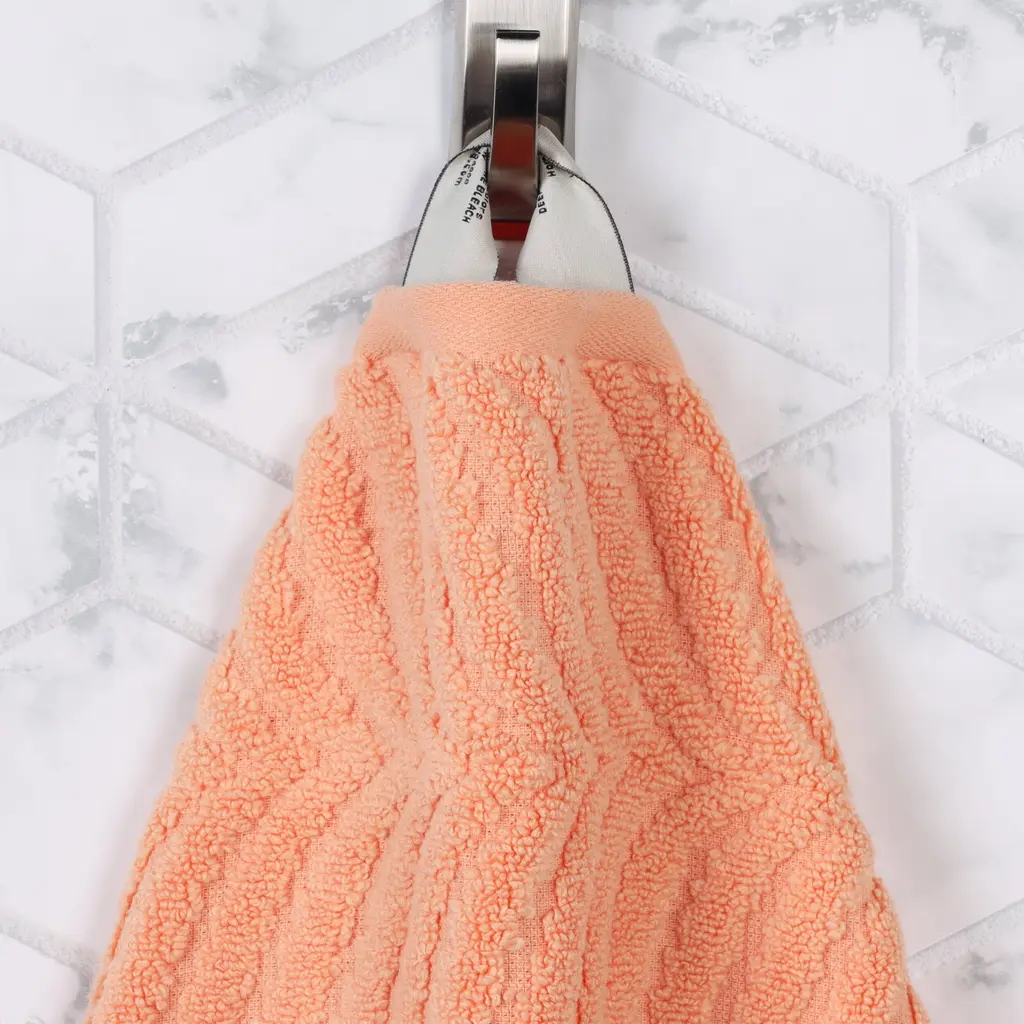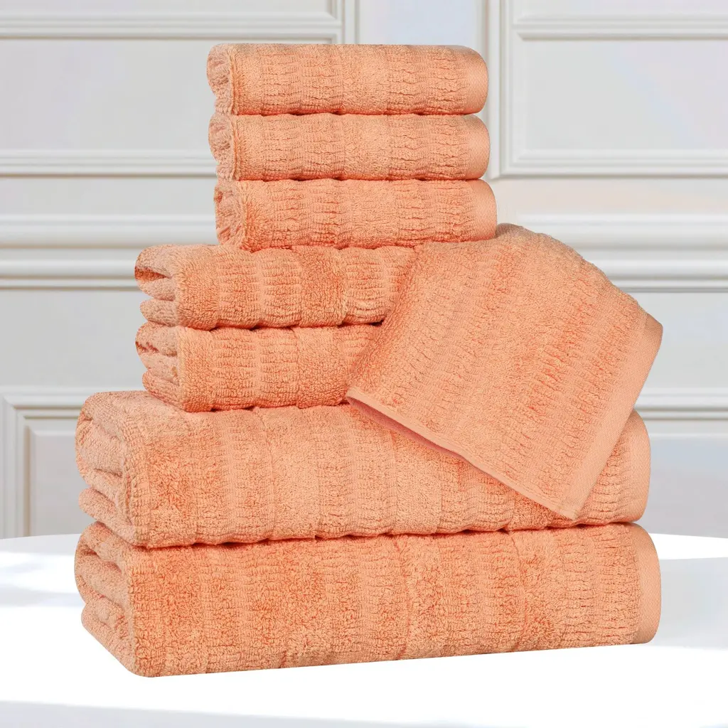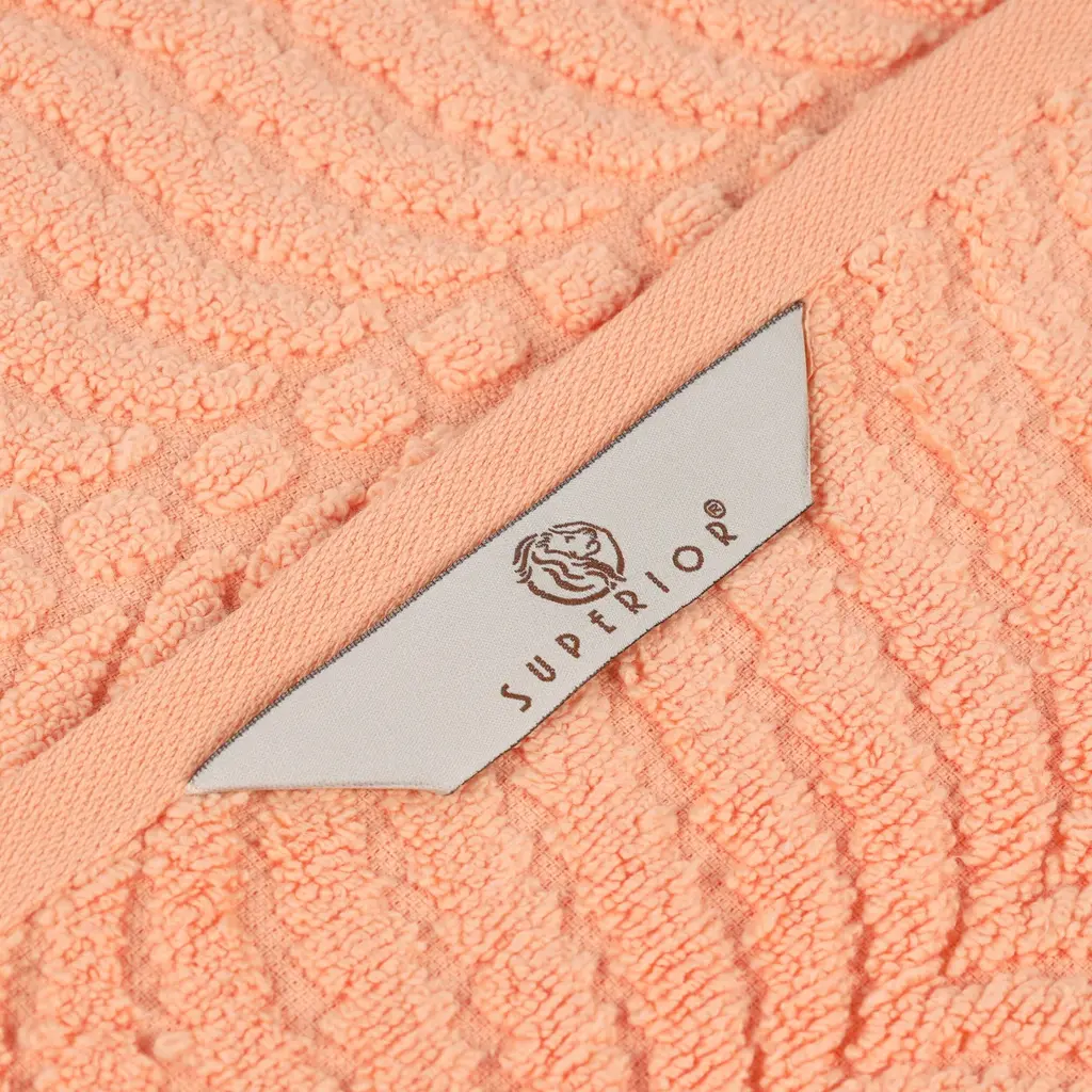 Superior Chevron Zero Twist Solid And Jacquard Cotton 9 Piece Towel Set - Peach